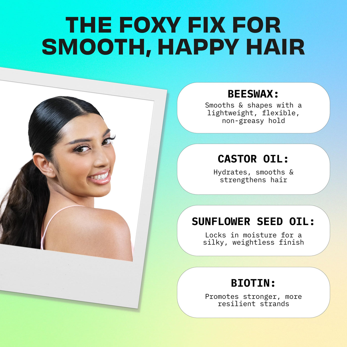 FoxyBae Hair Wax Stick - Tames Flyaways & Edges - Slick Back Non-Greasy Gel - Wax Stick for Hair for Women, Girls, Kids - with Beeswax, Biotin - 2.5 Fl Oz