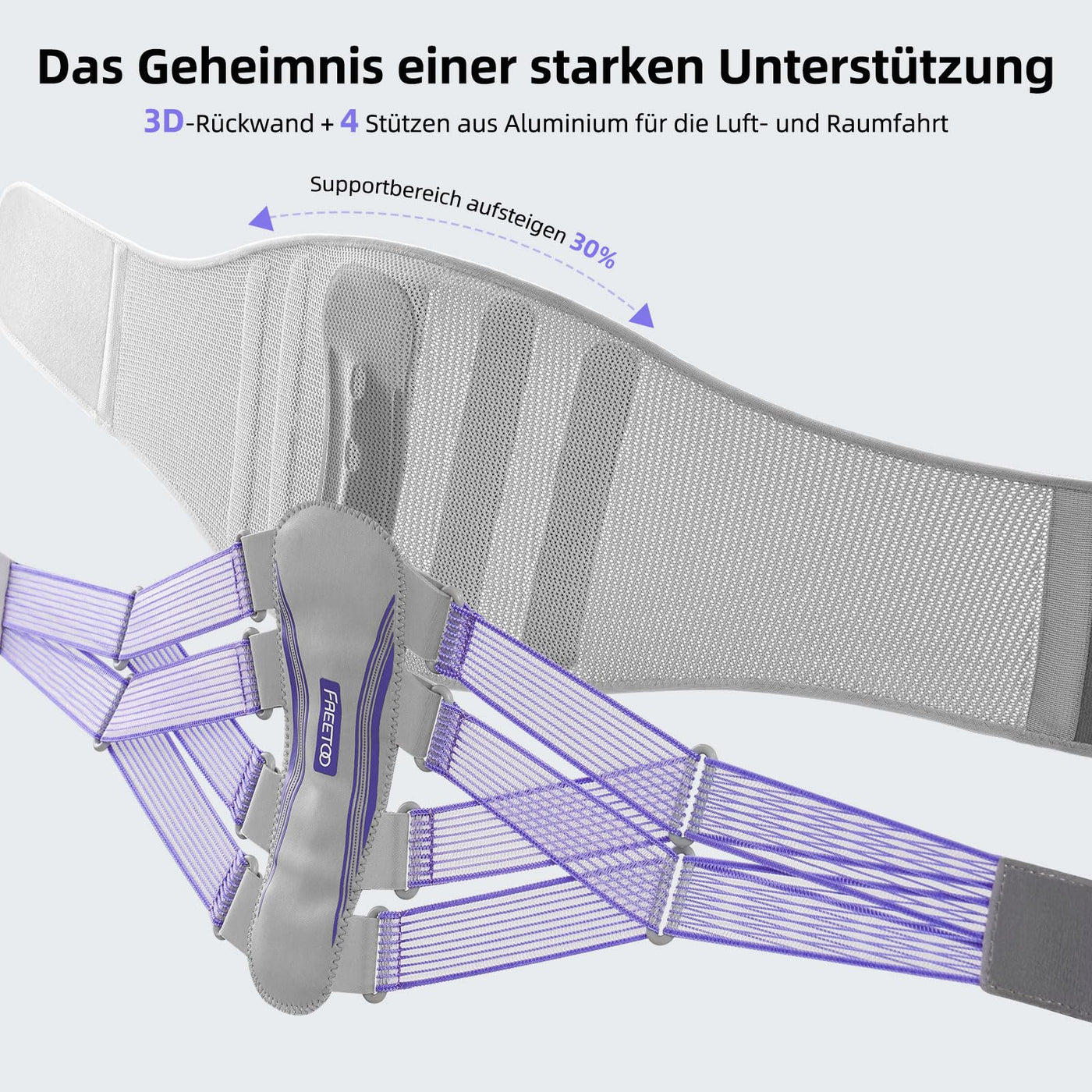 - 3D Bionic Support StripsLower Back RelaxationThe ergonomic design of the spine support strips perfectly fits the curve of the lower back and provides perfect support for the lumbar spine like an exoskeleton, with removable memory foam pads on the inside to completely relieve the pressure on the lumbar spine.It relieves the entire back.