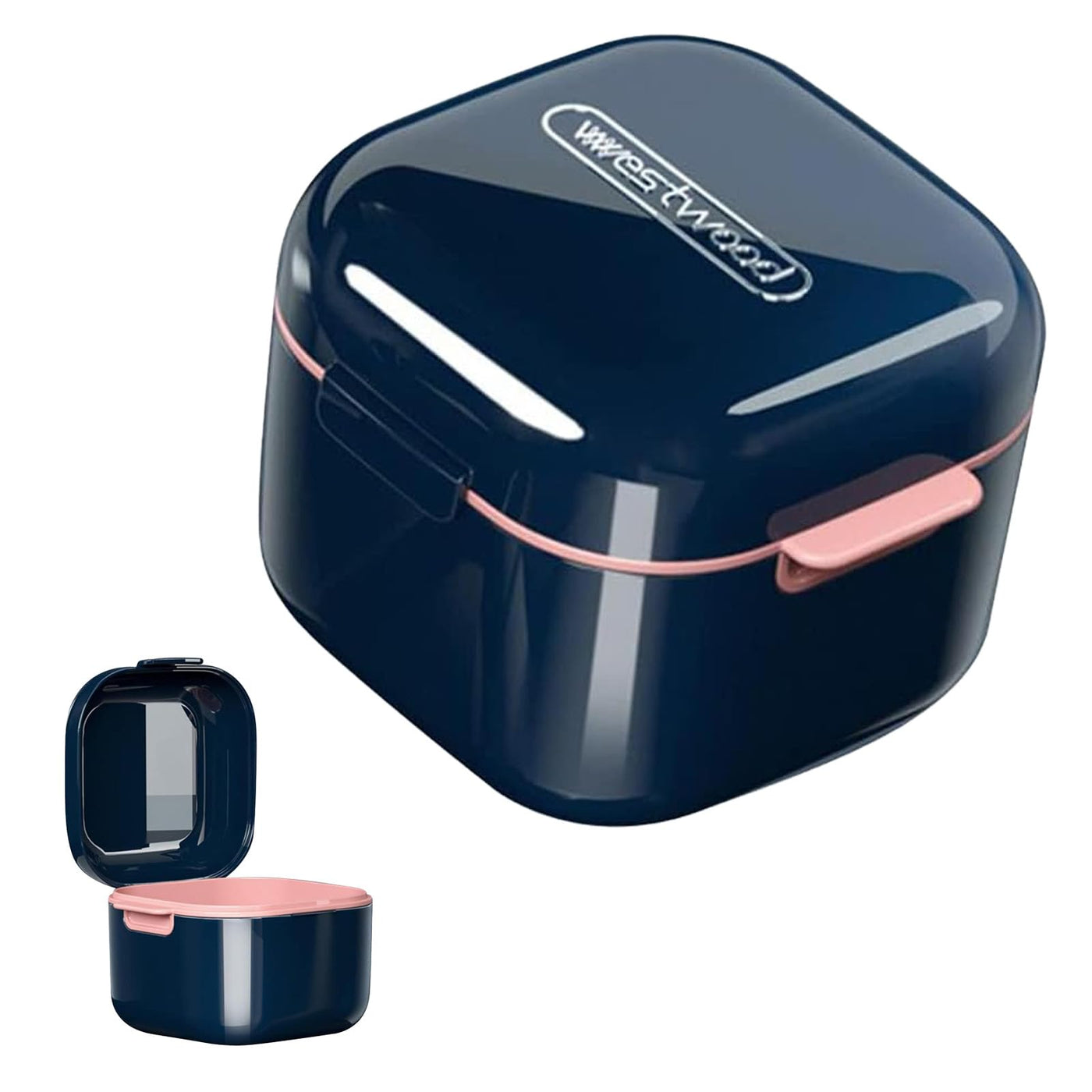 Fsahiuf Denture Box with Strainer, Denture Box Denture Box Retainer Container, Device Used as Storage and Washing for Portable Dentures, Dentures (Blue) Blue