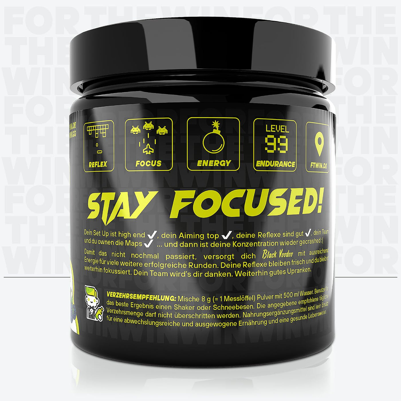FTWIN HIGH VOLTAGE BOOSTER | For GAMERS and E-SPORTERS | REFLEX – FOCUS – ENERGY – ENDURANCE | 320 g = 40 servings (320 g, Black Voodoo)