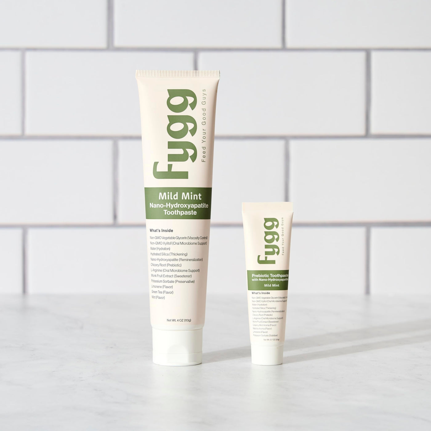 Fygg Fluoride-Free Toothpaste (4 oz) with Travel-Size (0.7 oz) – Mild Mint | Nano-Hydroxyapatite Formula for Sensitive Teeth, Whitening & Enamel Repair