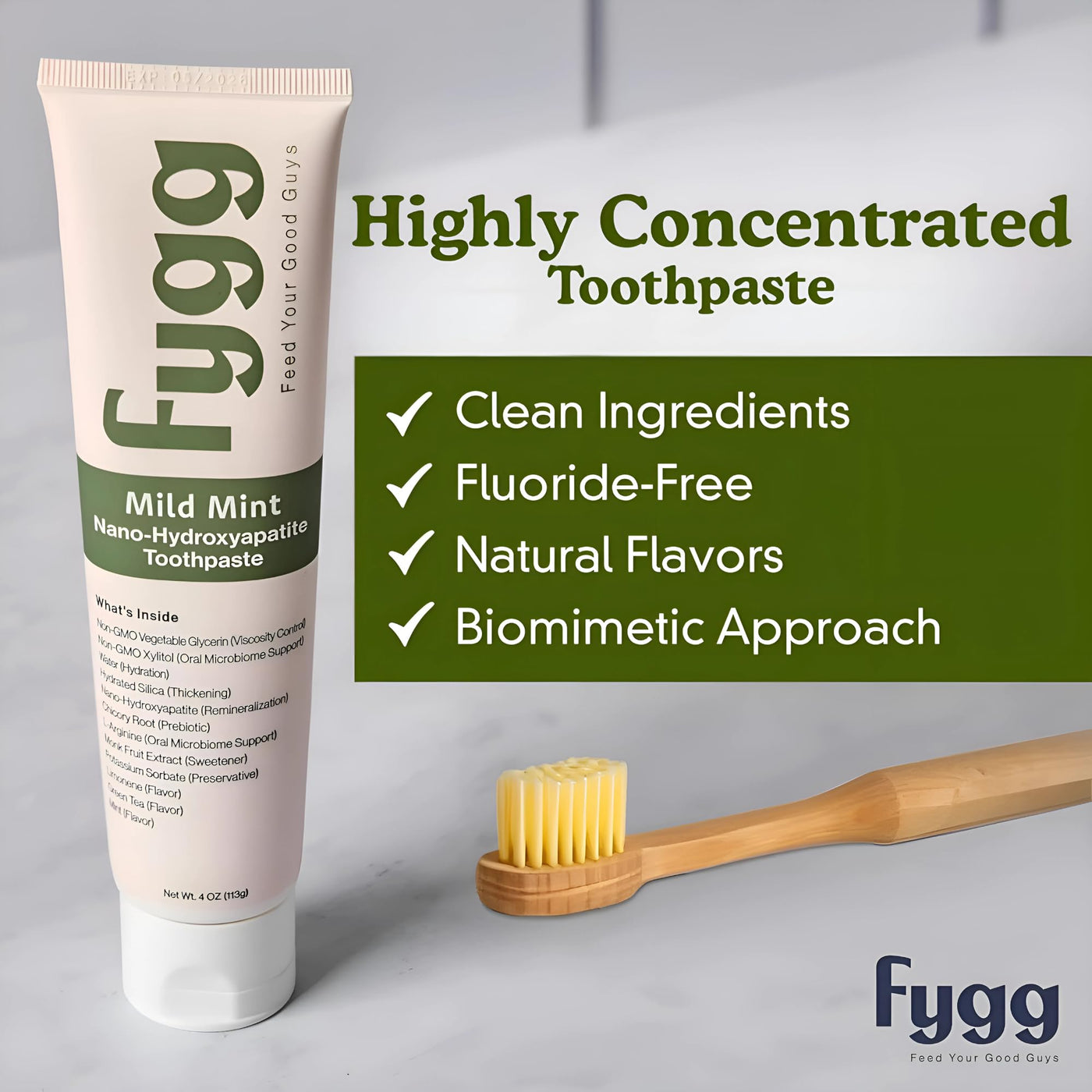 - Safe, Clean, & Gentle Formula: Created by functional dentists with top-quality, clean ingredients, our nano-hydroxyapatite toothpaste is natural and free from oral microbiome disruptors like essential oils, emulsifiers, detergents, and SLS. The Fygg toothpaste is fluoride-free and maintains your mouth's delicate ecosystem while providing exceptional oral care. Formulated to restore a healthy PH balance and support your mouths natural oral microbiome