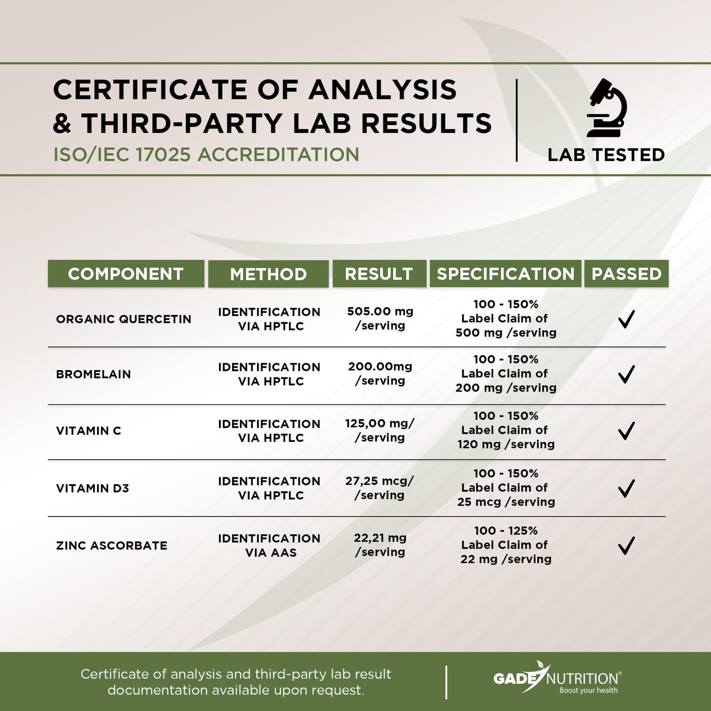 - The Smart Addition to Your Daily Routine: Elevate your wellness regimen with a supplement that blends science, nature, and quality. The Gade Nutrition Quercetin Complex is ideal for anyone looking to stay proactive about their healthoffering targeted, multi-nutrient support in one easy step. Make this high-quality formula a part of your everyday routine and feel the difference consistent, clean support can make.