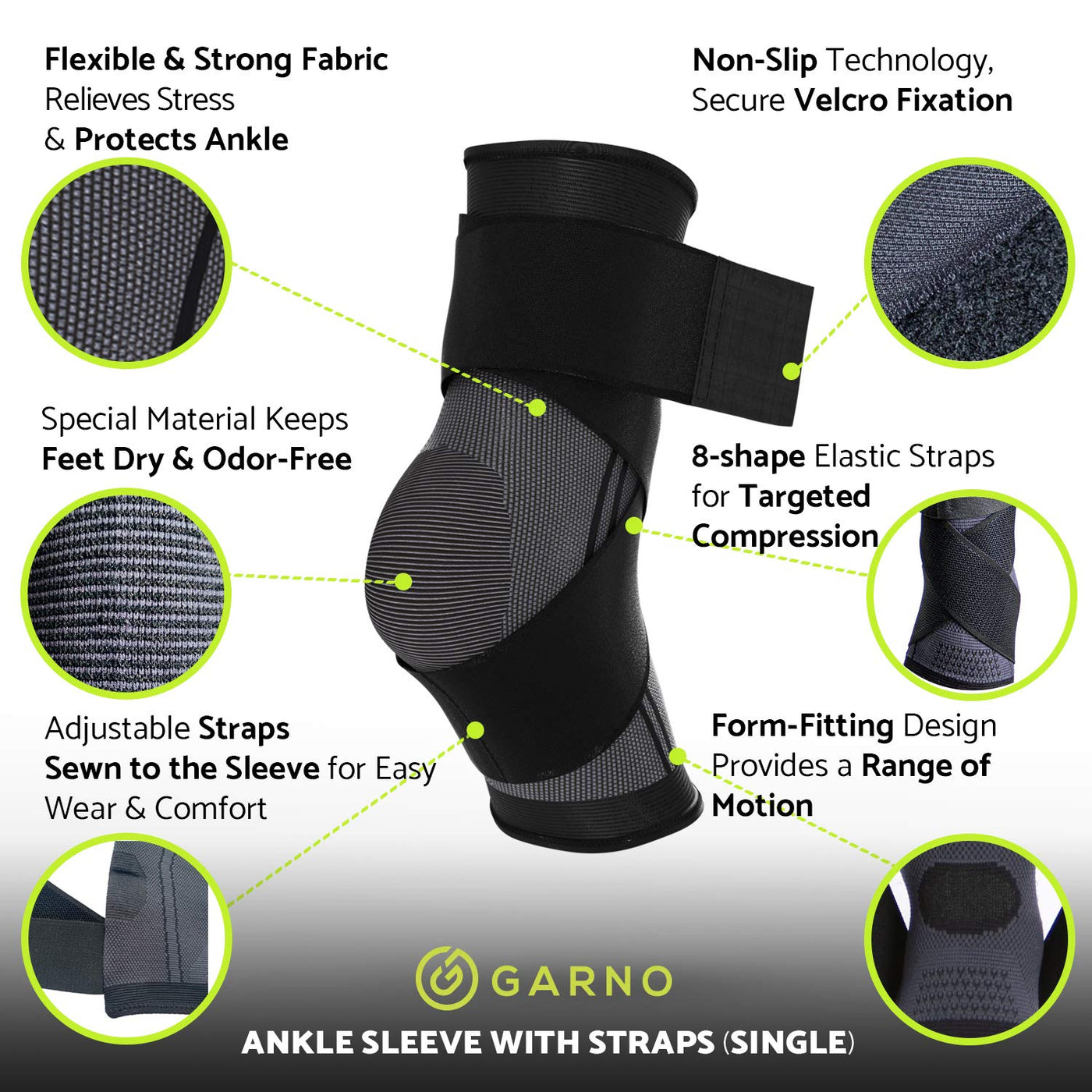 GARNO Ankle Brace – Compression Foot Sleeve with Adjustable Straps for Men & Women, Plantar Fasciitis & Achilles Support, Heel & Arch Pain Relief, Swelling & Injury Recovery, Protection for Sports, Running & Basketball (One Size Fits Most, Black)