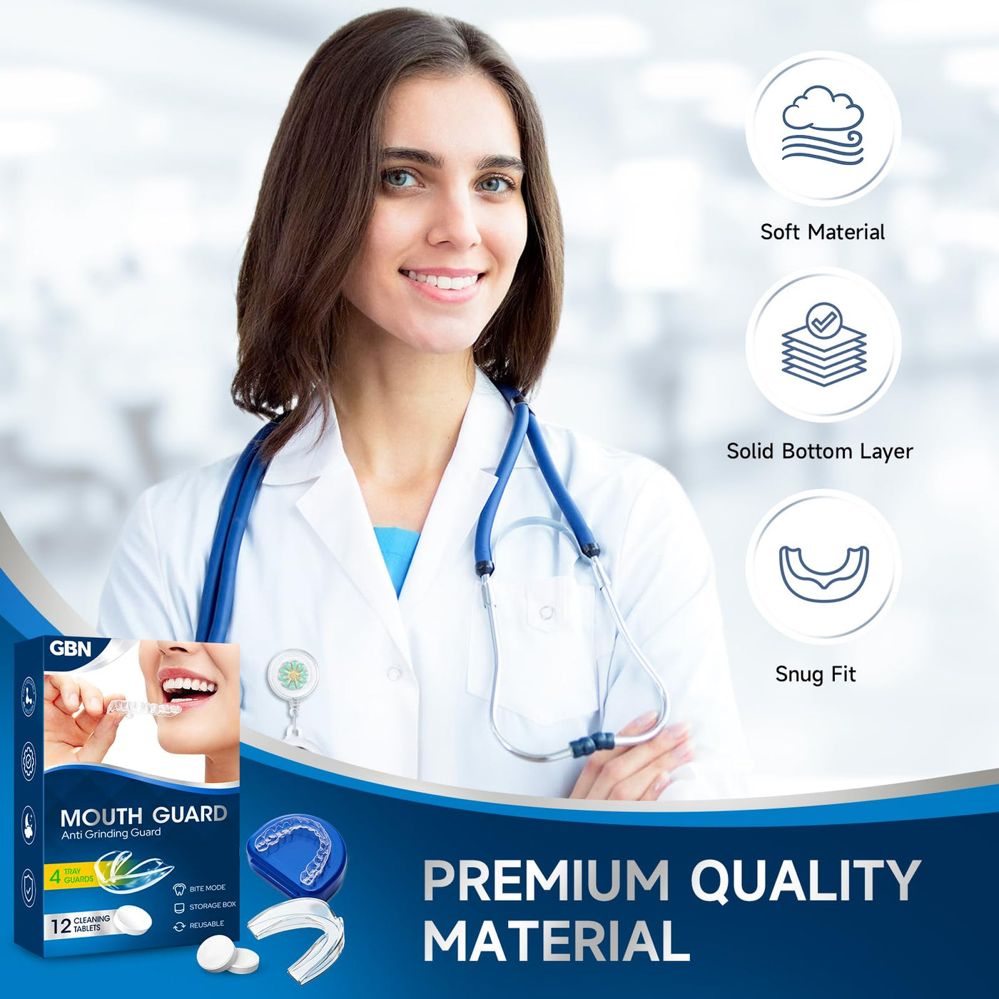 - PREMIUM MATERIAL - GBN mouth guard for grinding teeth at night is made of food-grade EVA material, rigorously tested for safety and durability. BPA-free and latex-free, nightguard shield against teeth grinding and clenching while you sleep