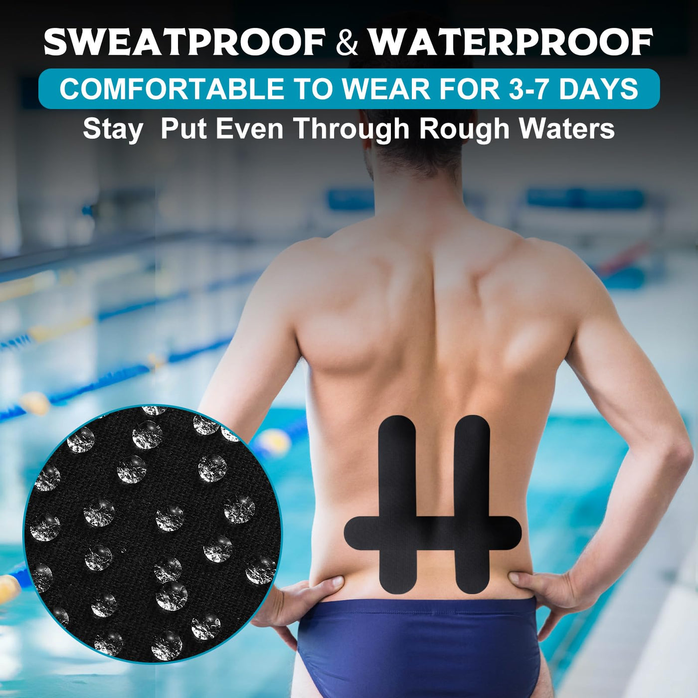 - Waterproof and elastic: Our precut kinesiology tape for lower back has a special waterproof coating, which will not lose its effectiveness due to water or sweat, and the back tape for lower back stability can be stretched up to 180% of its length, so it is easy to stretch to the desired length and not easy to tear