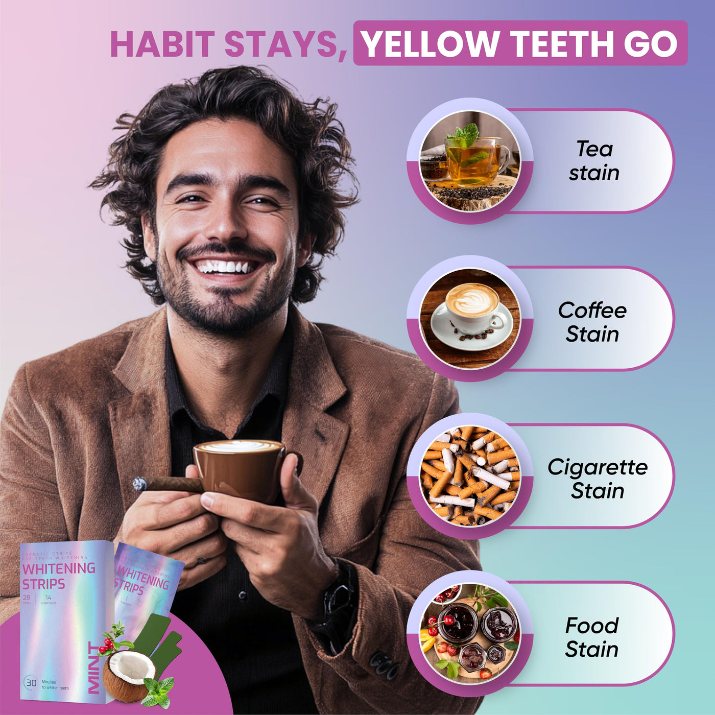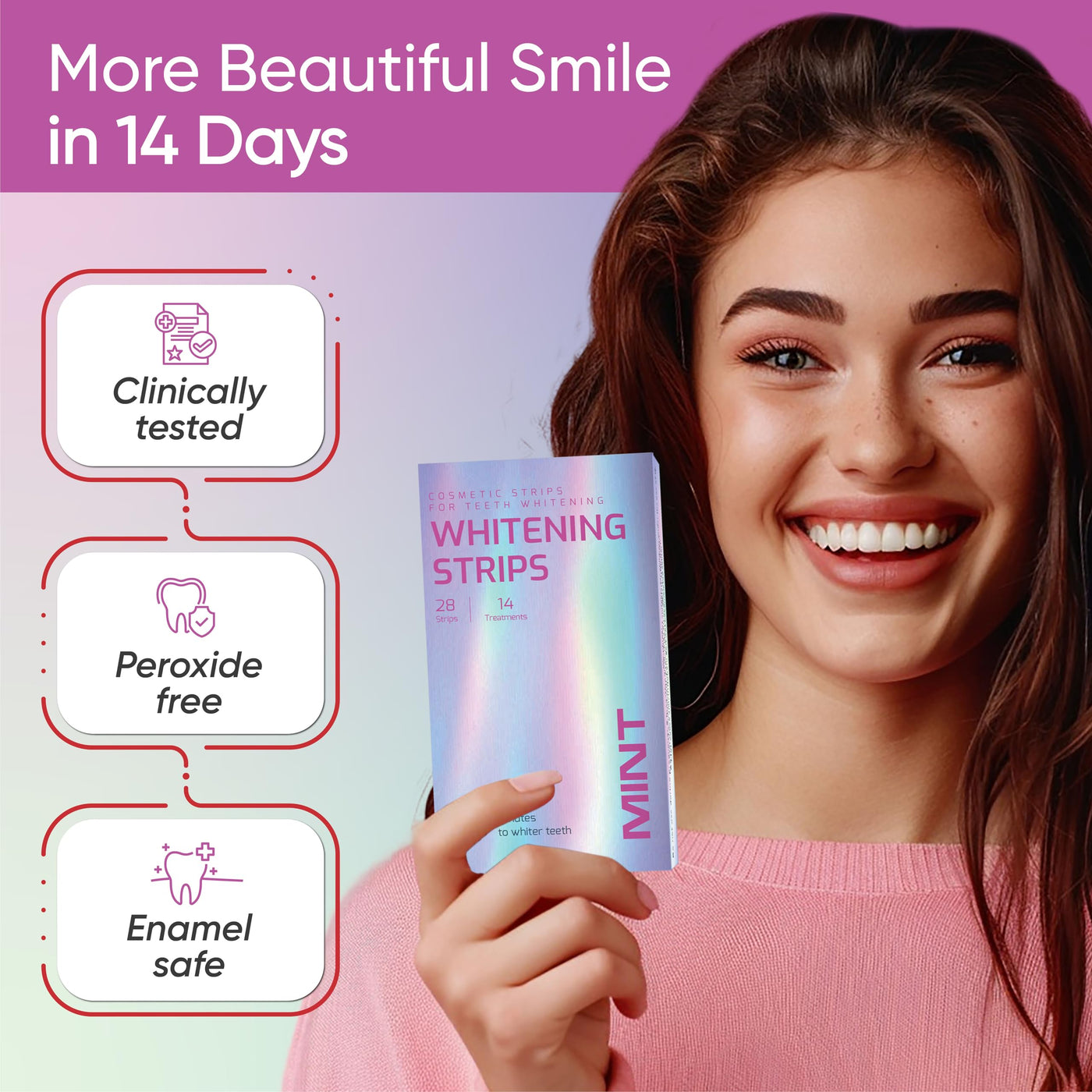 Gentle Teeth Whitening Strips - (28 Stripes) Bleaching Teeth Free of Peroxide for a Radiant Smile - Gentle Tooth whitening Mint