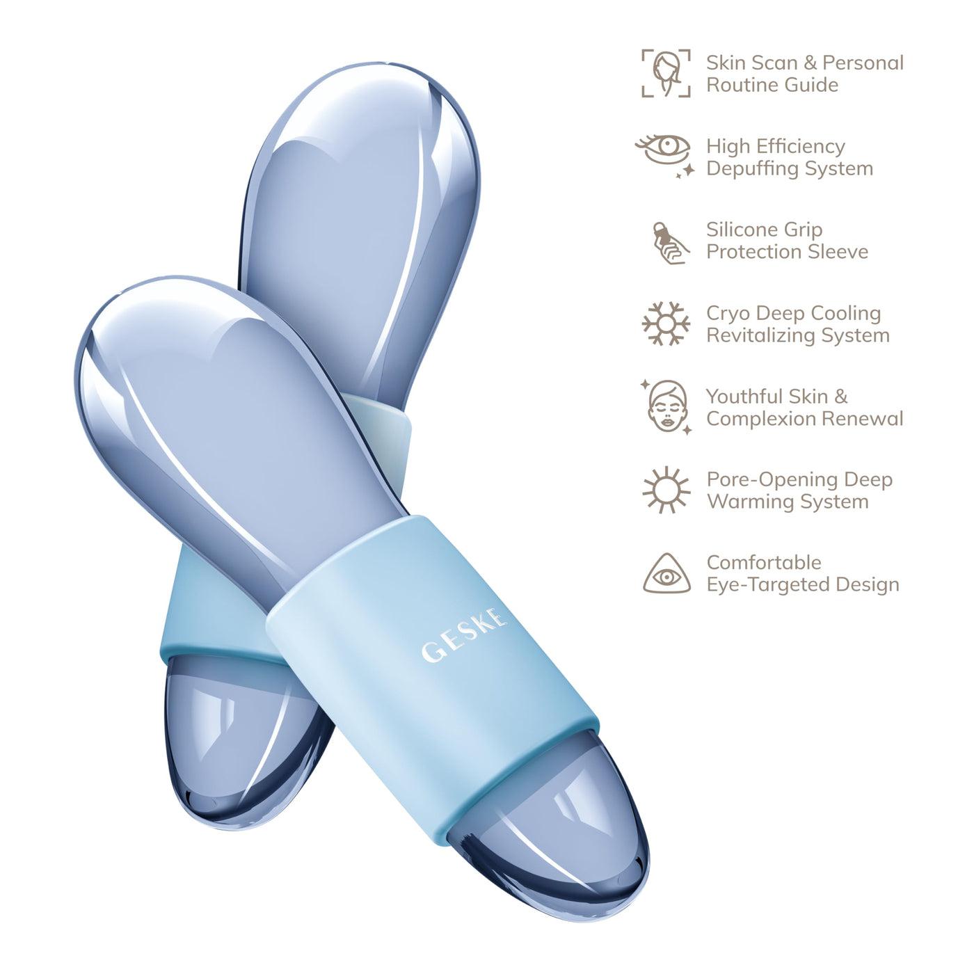 GESKE SmartAppGuided™ Cool & Warm Duo Eye Massager | 7 in 1 | Time-saving Dual Massager | For Eyes & Face | Battery-free Cooling & Warming | Firms, Relaxes & De-Puffs Skin