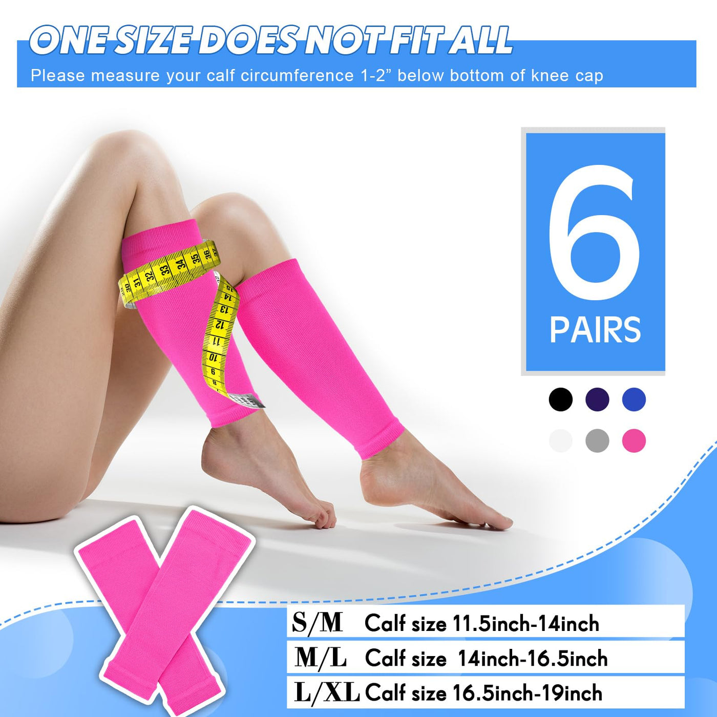 Geyoga 6 Pairs Calf Compression Sleeve for Men Women Football Leg Sleeve Elastic Calf Support Sock for Sports Cycling Running Basketball Large