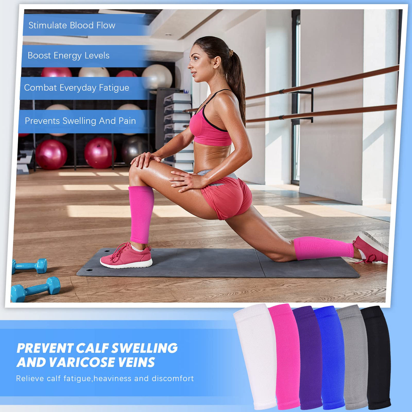 Geyoga 6 Pairs Calf Compression Sleeve for Men Women Football Leg Sleeve Elastic Calf Support Sock for Sports Cycling Running Basketball