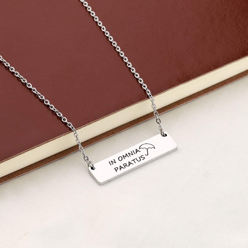 Gilmore Girls Gifts In Omnia Paratus Bar Necklace Strength Jewelry Gilmore Jewelry Ready for Anything Motivational Necklace Gift for Women Girls Umbrella Gilmore Gifts in Omnia Paratus nec