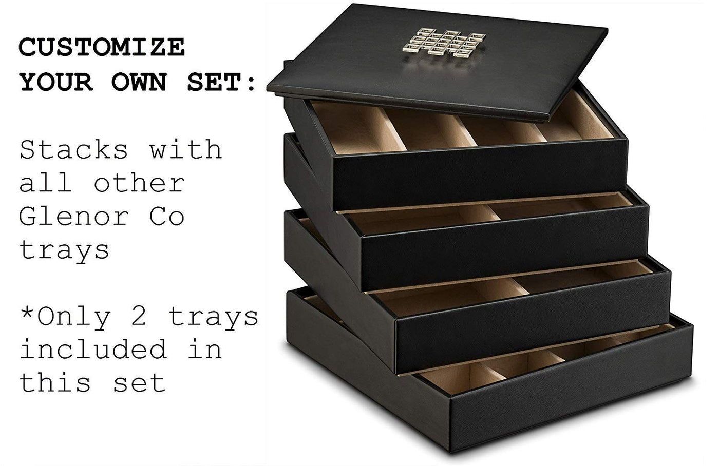Glenor Co Jewelry Organizer Tray - Set of 2 - Stackable 8 Slots Jewelry Storage Trays - Display on Dresser or Drawer - for Necklace & Bracelet - Compatible with Other Glenor Trays - Black