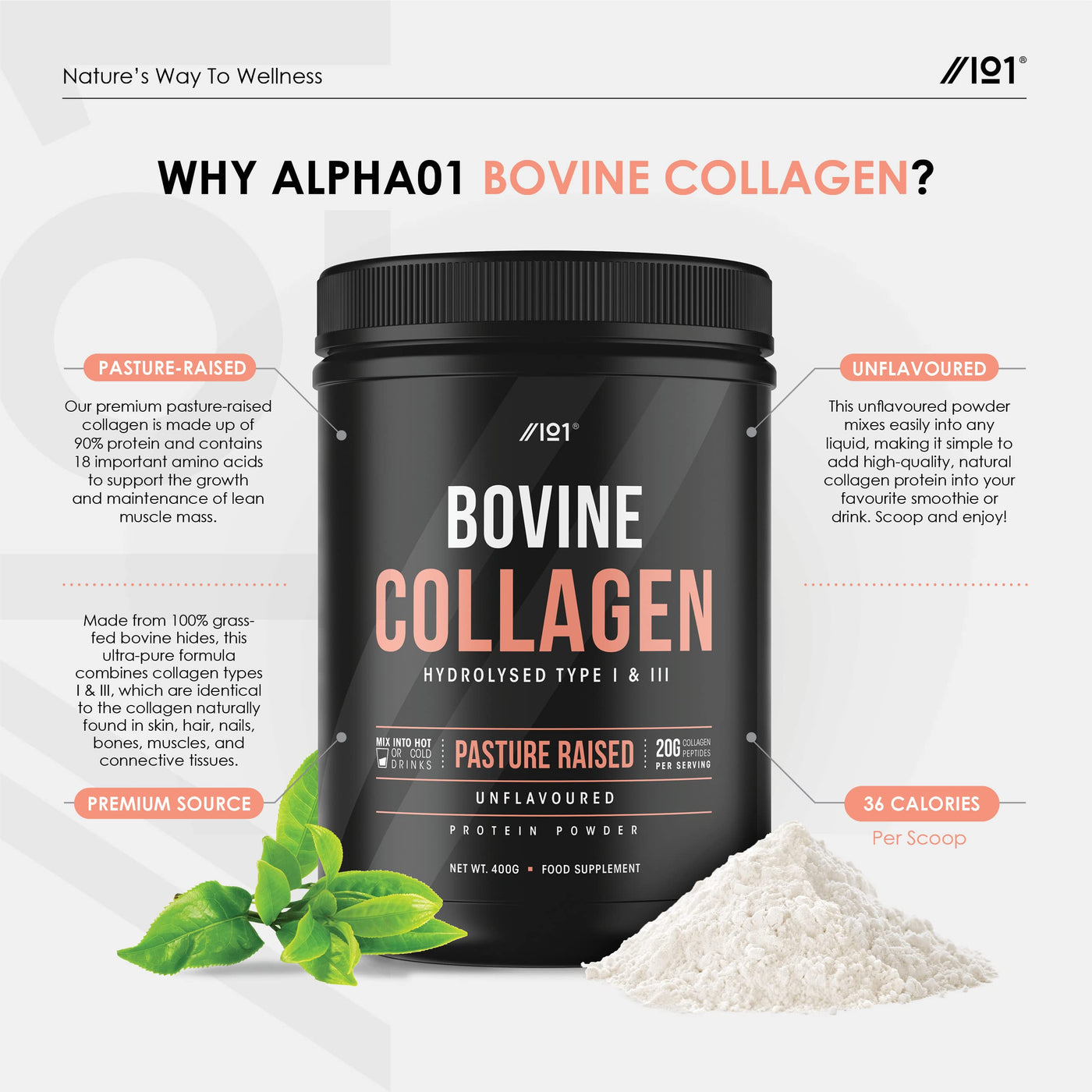 Grass Fed Collagen Protein Powder - Type I & III Pasture Raised Bovine Hydrolysed Collagen Peptides - Halal, Kosher, Unflavoured, 400g 400 g (Pack of 1)