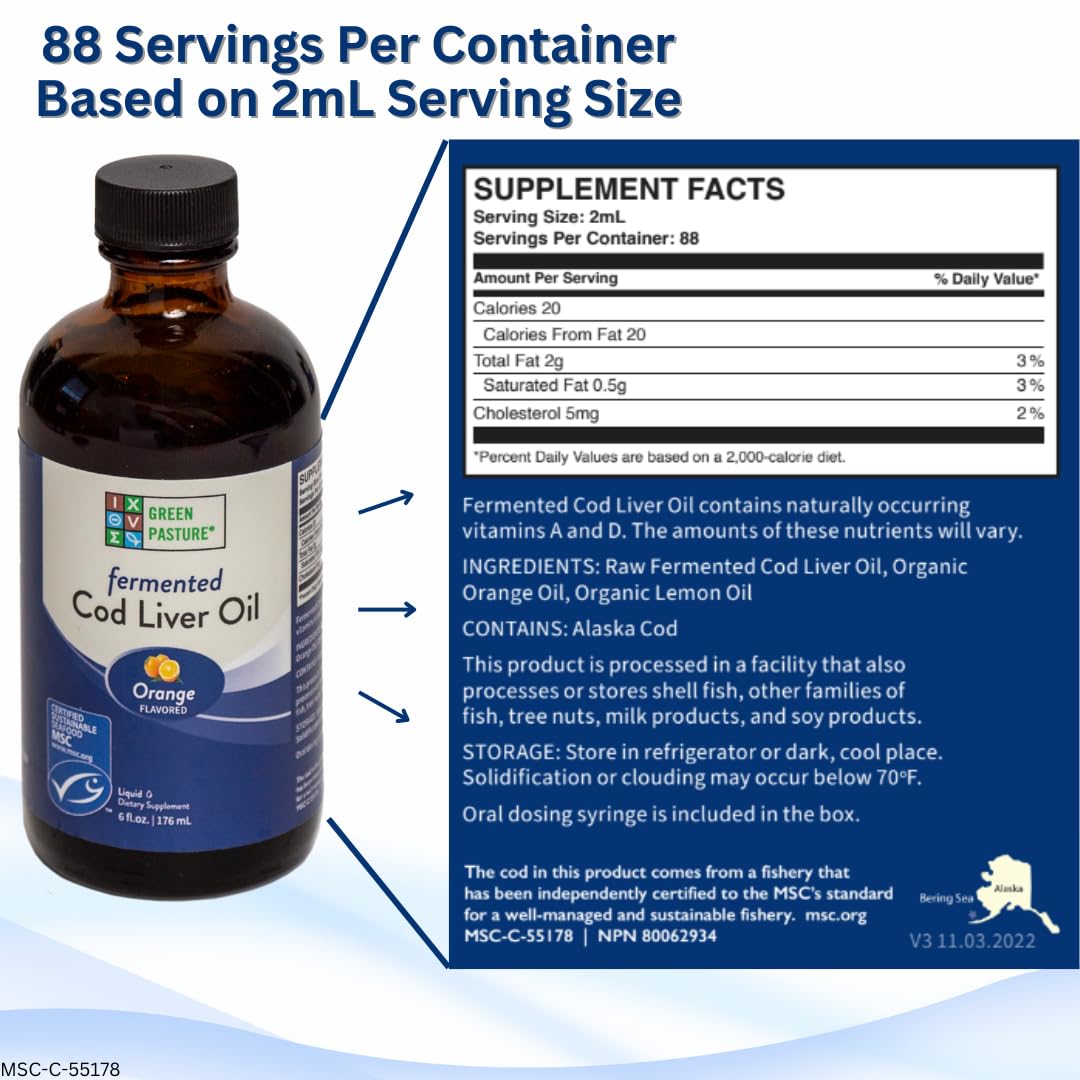 - Green Pasture fermented cod liver liquid, is also available as a capsule. This fermented cod liver oil is a liquid that you can use a syringe or spoon to take daily. Temperature stable to store in cabinet or refrigerator.