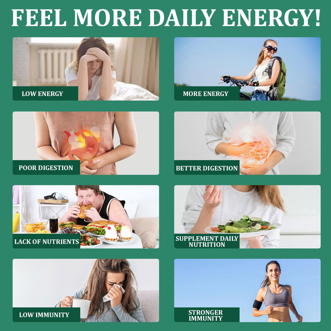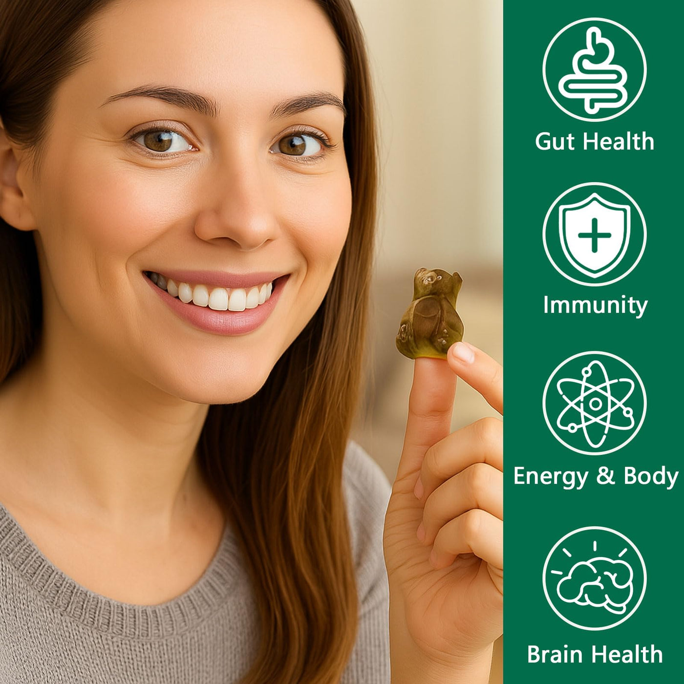 - DAILY GREENS GUMMIESContaining 60 powerful ingredients, this all-in-one Greens Gummy Bears helps improve gut health, boost immunity and natural energy, improve your overall wellness