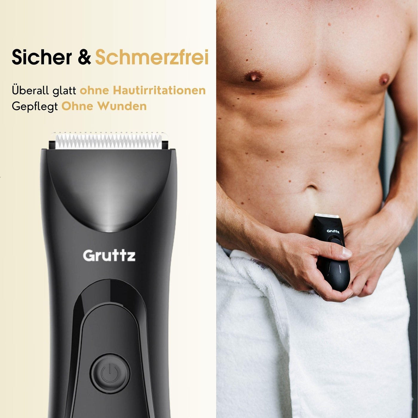 Gruttz, intimate razor for men, men's electric razor with standing charging station, razor for men's intimate area for chest, legs, armpit, groin, nose, IPX7, travel bag