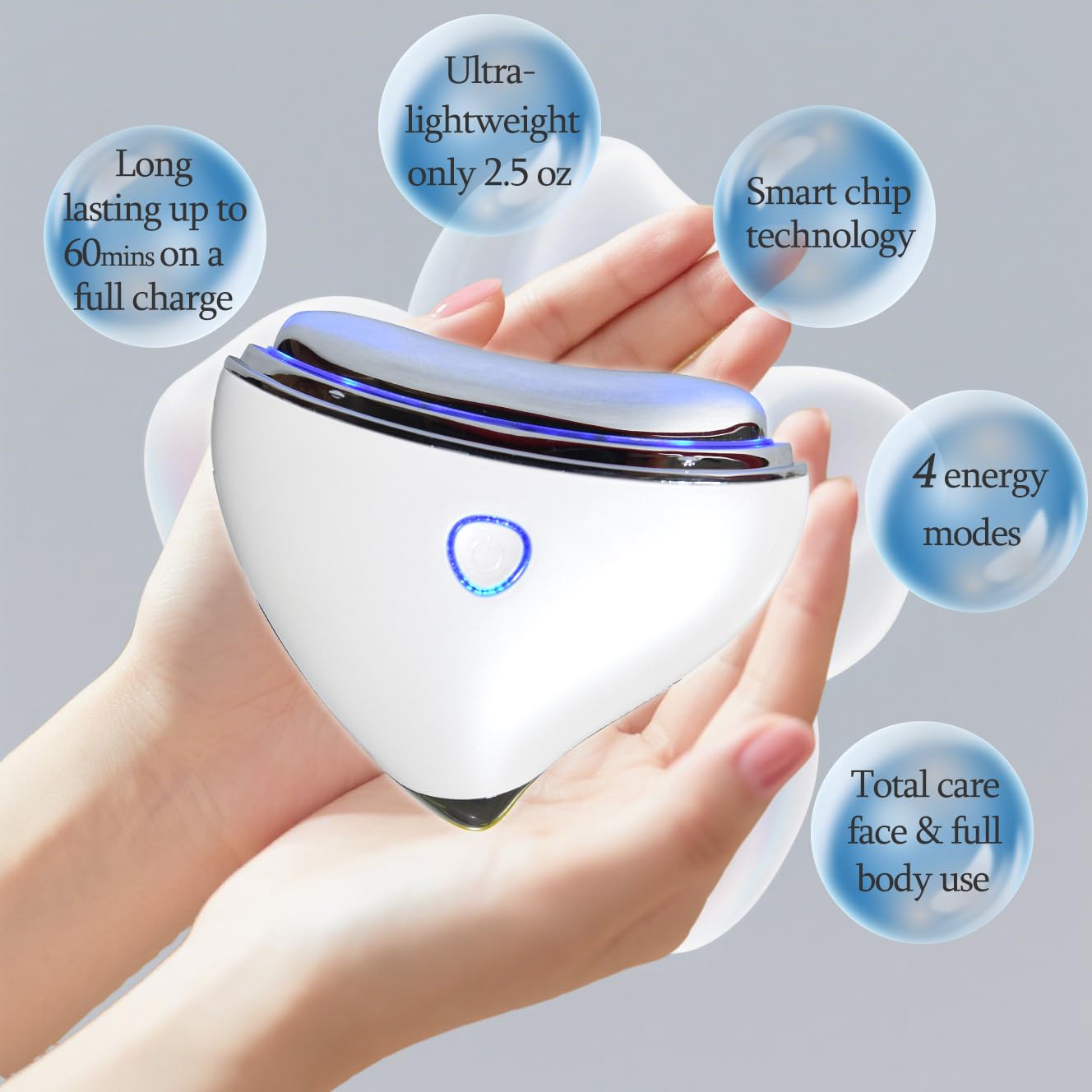 - Worry-free Battery LifeThe face massager tool adopts an ergonomic design, offering a comfortable grip that allows even beginners to operate it easily. It enables you to enjoy salon-quality skincare effects right in the comfort of your home.This electric facial Massager can support more than ten uses after 2 hours of charging, ensuring convenient and hassle-free battery life. Our pocket-friendly home beauty device is the perfect choice for gifting.