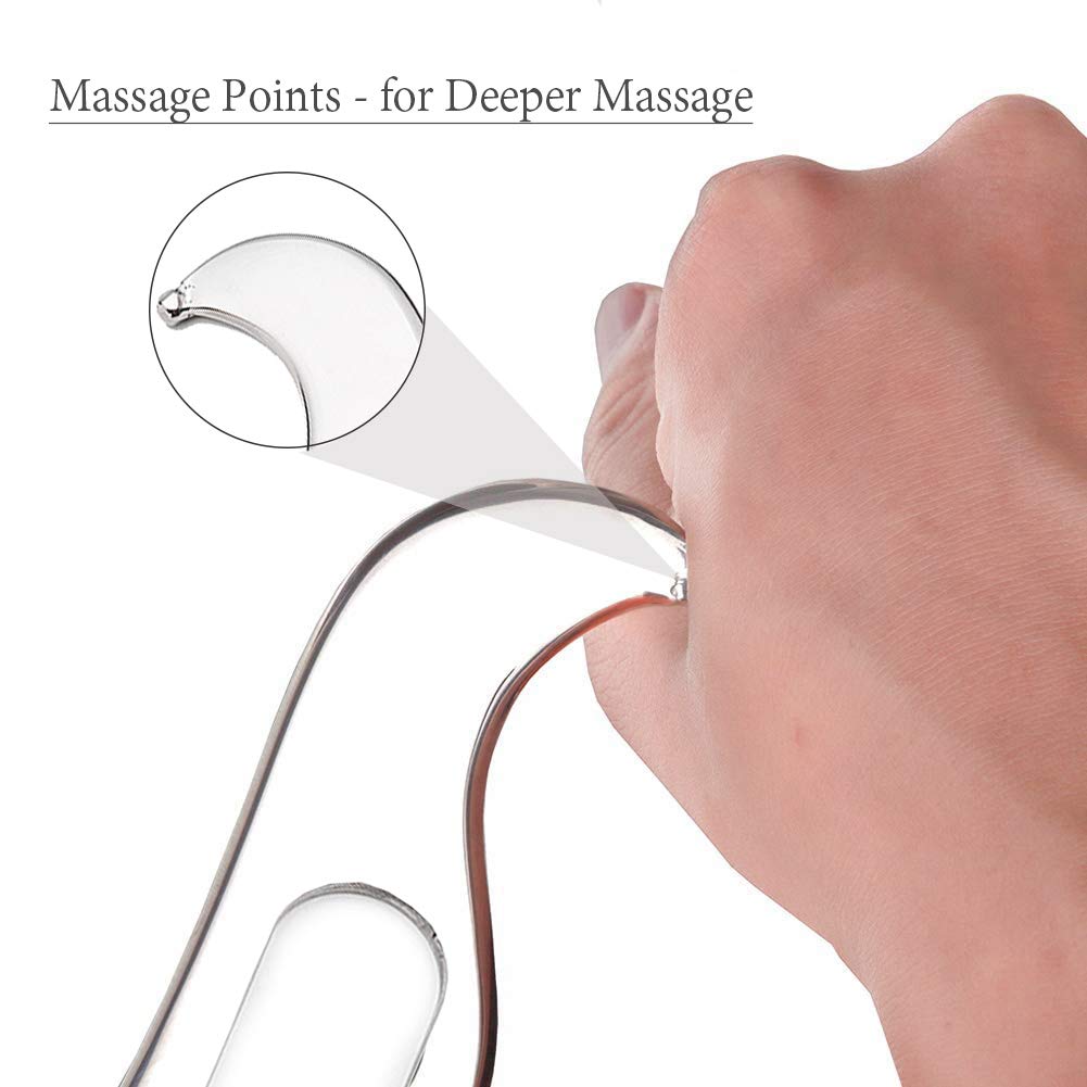 - REASONABLE DESIGN-The curve design of the gua sha tool can perfectly match all parts of body, and give the best scraping angle. Your finger can go through the hole above, so that you can firmly hold it. It has a super smooth touch, will not hurt your skin.
