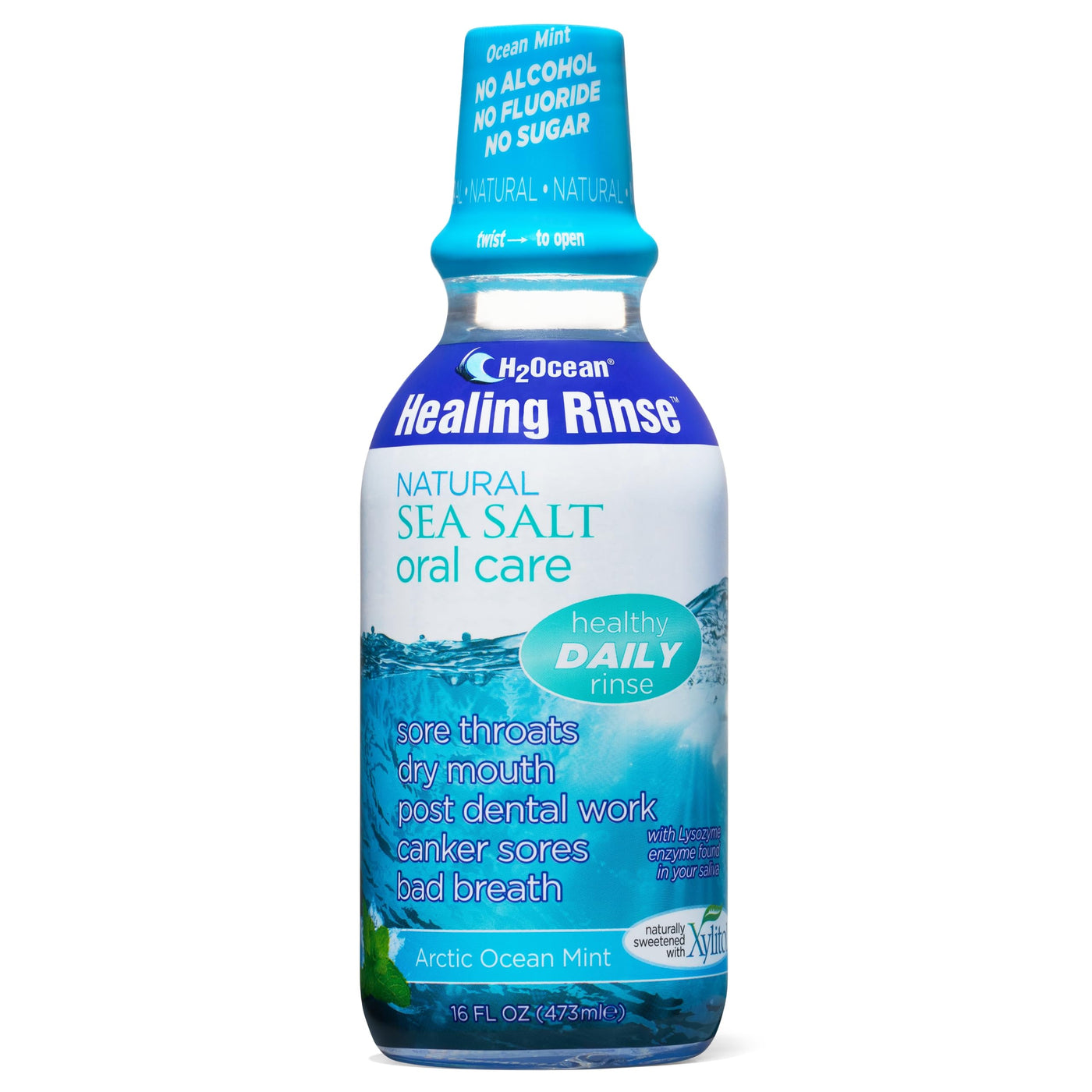 H2Ocean Healing Rinse Natural Sea Salt Oral Care - Mouth Rinse for Oral Care - Great for Piercings, Sore Throats & Gum Health - Alcohol- & Fluoride-Free Mouthwash - Arctic Ocean Mint, 16 oz