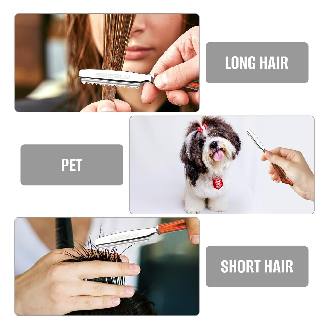 - SAFETY:The hair texture razor comply with strict safety standards. The blades will not rust. The handles are made of wood and designed with anti-slip textures. The haircutting razor handle conforms to the curve of the palm and can enhance the stability of holding.