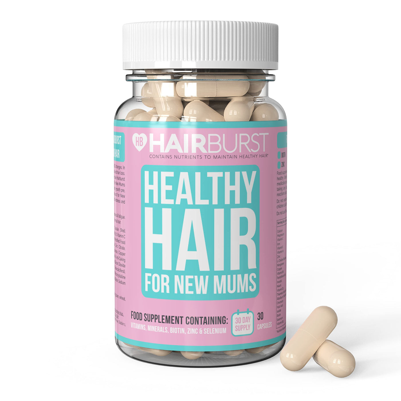 Product description During this period you can take Hairburst Pregnancy Hair Vitamins to maintain healthy hair growth. Hairburst Pregnancy Hair Vitamins contain safe levels of biotin which is still effective for normal hair growth PRE, DURING & POST pregnancy. Hairburst Pregnancy Hair Vitamins contain a range of B vitamins which can combat tiredness and fatigue when your new arrival is keeping you up at night. Ingredients Calcium Carbonate, Magnesium Oxide, Ascorbic Acid, Nicotinamide, DL-Alpha Tocopherol, Ferrous Fumerate, Zinc Citrate, L-Choline Bitartrate, Inositol, Pantothenic Acid, Pyridoxine HCL, Thiamine, Riboflavin, Copper Gluconate, Manganese Gluconate, Folic Acid, Potassium Iodine, Biotin, Chromium Picolinate, Vitamin K2, Sodium Selenite, Cholecalciferol, Methylcobalamin, Silica, Magnesium Stearate, Vegetarian capsule.