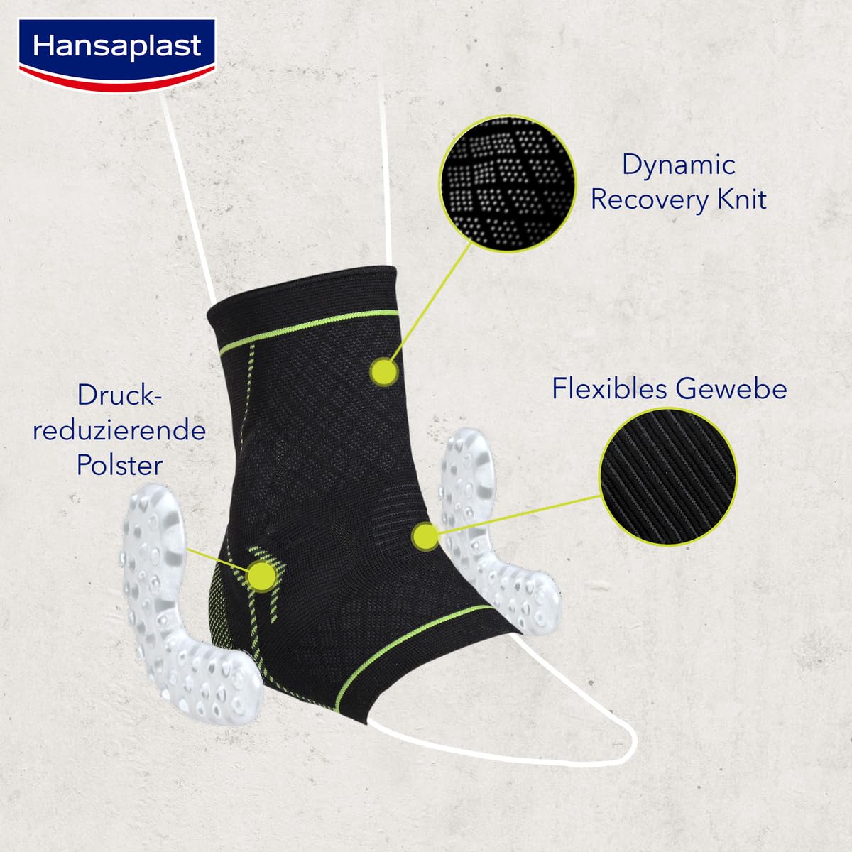 Product description Hansaplast Performance ankle bandage in size S/M – stabilizes and relieves pain, weak or injured ankles Performance ankle support provides stability, protection and compression for sore, weak, or injured ankles. It offers a moderate Level of support during movement and other activities. In addition, one helps Pressure-reducing padding to relieve the ankle when moving. The Bandage supports during active recovery. By compressing the Tissue also stimulates blood circulation and thus regeneration promoted. The flexible fabric moves with the body for maximum comfort and mobility. The ankle support is provided thanks to breathable fabric for high wearing comfort and moisture regulation when moving around Everyday life, at work and during sport. The ankle bandage was developed by Physiotherapists and sports doctors tested and recommended. It can be used on both the left and the right Worn at the ankle. The product quality is through the standard 100 of OEKO-TEX certified.The product advantages in detail:For high mobility and Stabilizing support Supports active recovery Flexible FabricBreathable materialSuitable for left and right AnkleWashableAvailable in 2 sizesSize S/M (ankle circumference 18.5 – 22.5 cm)Application: Pull the bandage over the right/left foot. The label should be on the front. Pull the bandage over the ankle so that the Padding wraps around the ankle at the bottom and sides. Pull the bandage up until the heel is in the marked heel zone. Address Manufacturer/Importer Beiersdorfstrasse 1-9, 20245 Hamburg
