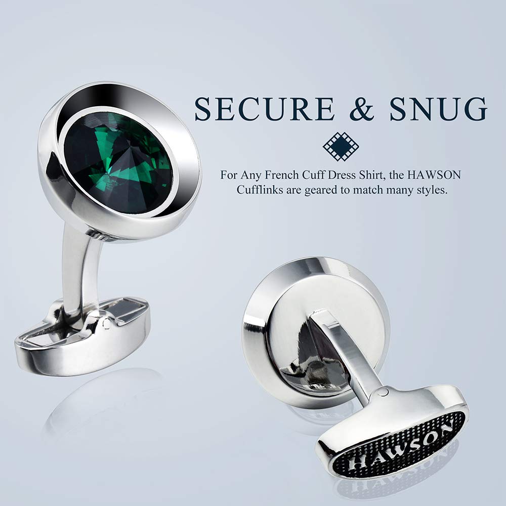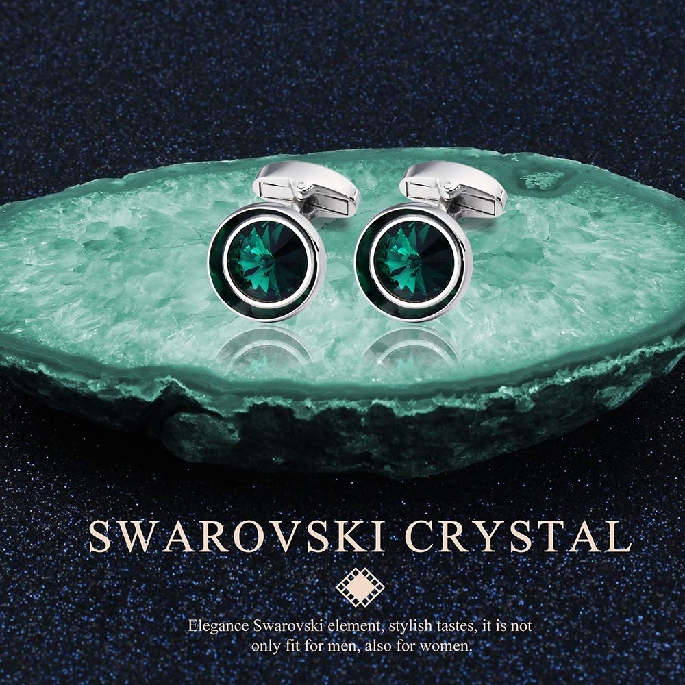 HAWSON Cufflinks for Men-Fashion Multicolor Swarovski Crystal Men French Shirt Cufflinks for Regular Weeding Business Emerald