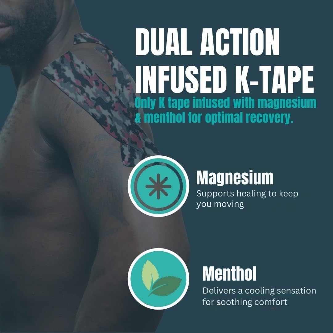 Heali Kinesiology Tape with Magnesium and Menthol, 20 Pcs Precut Strips, K Tape Roll, Knees, Sports Tape, Water Resistant - Eco - Pink Camo 1-Pack