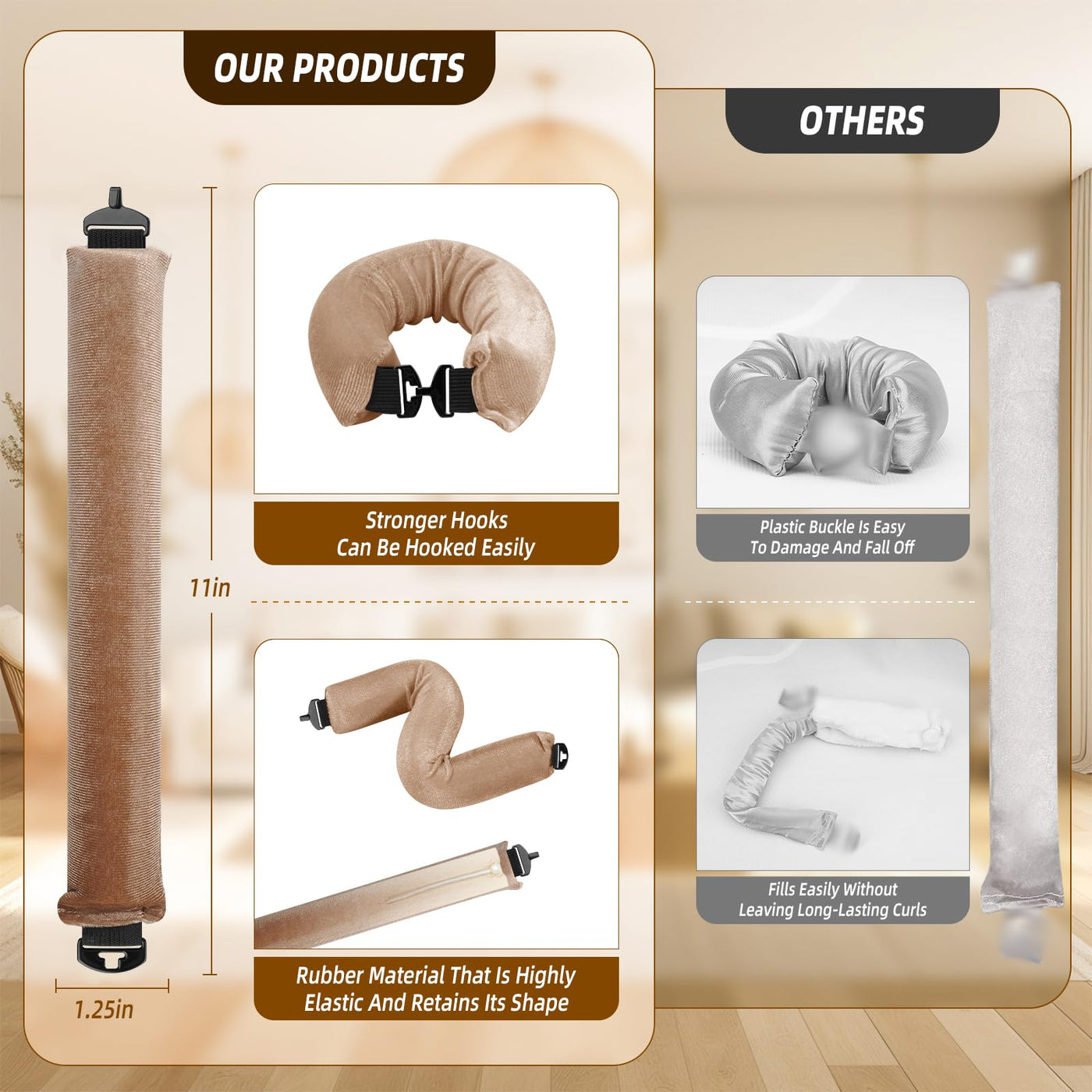- COMFORTABLE FABRIC - Upgraded overnight curls blowout rods are wrapped in soft, comfortable velvet satin, the flexible design of these flexible rods eliminates the need for pins or clips, and its upgraded design with hooks makes it easy to use whether you sleep or wear it all day Comfortable to wear and not easy to fall off