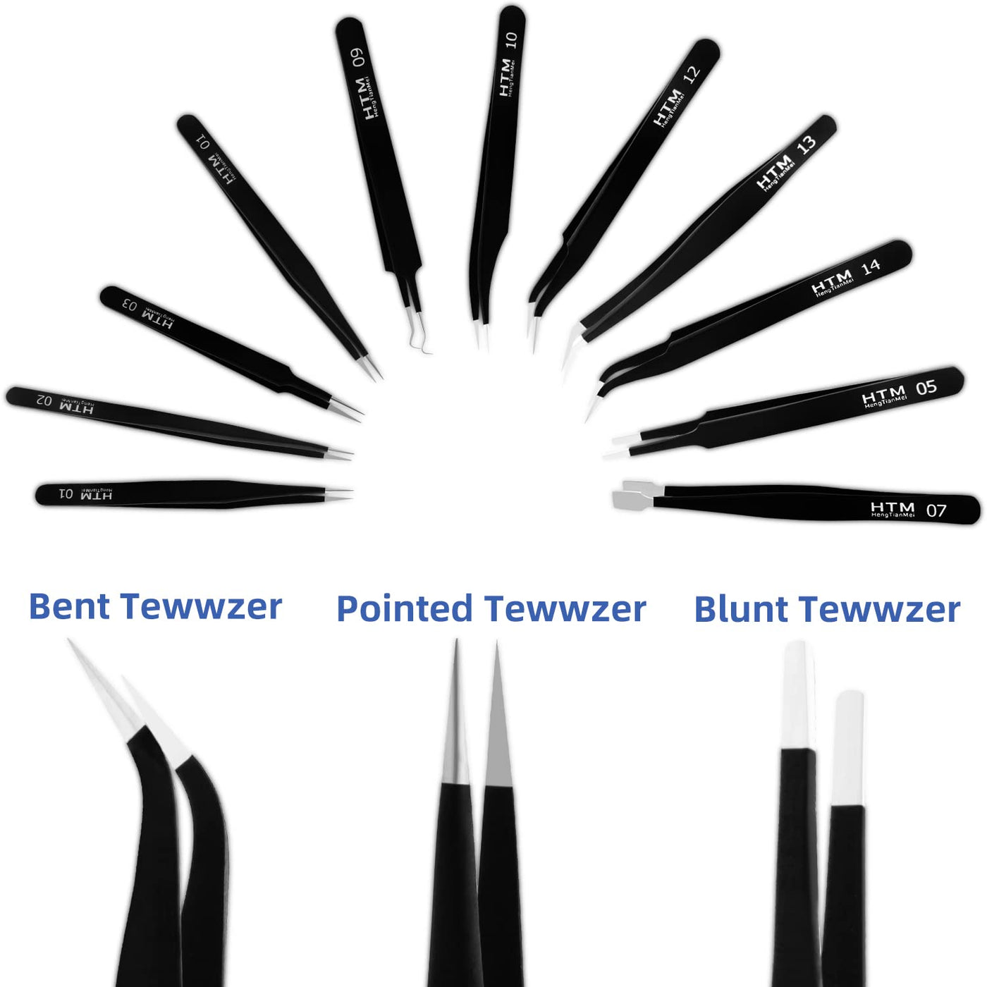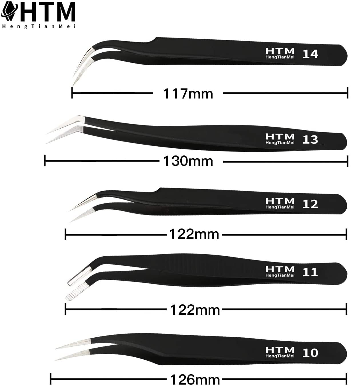 HengTianMei Precision Tweezers Set, ESD Anti-Static Stainless Steel Tweezers Set for Craft, Jewelry, Electronics, Laboratory Work (14 PCS)
