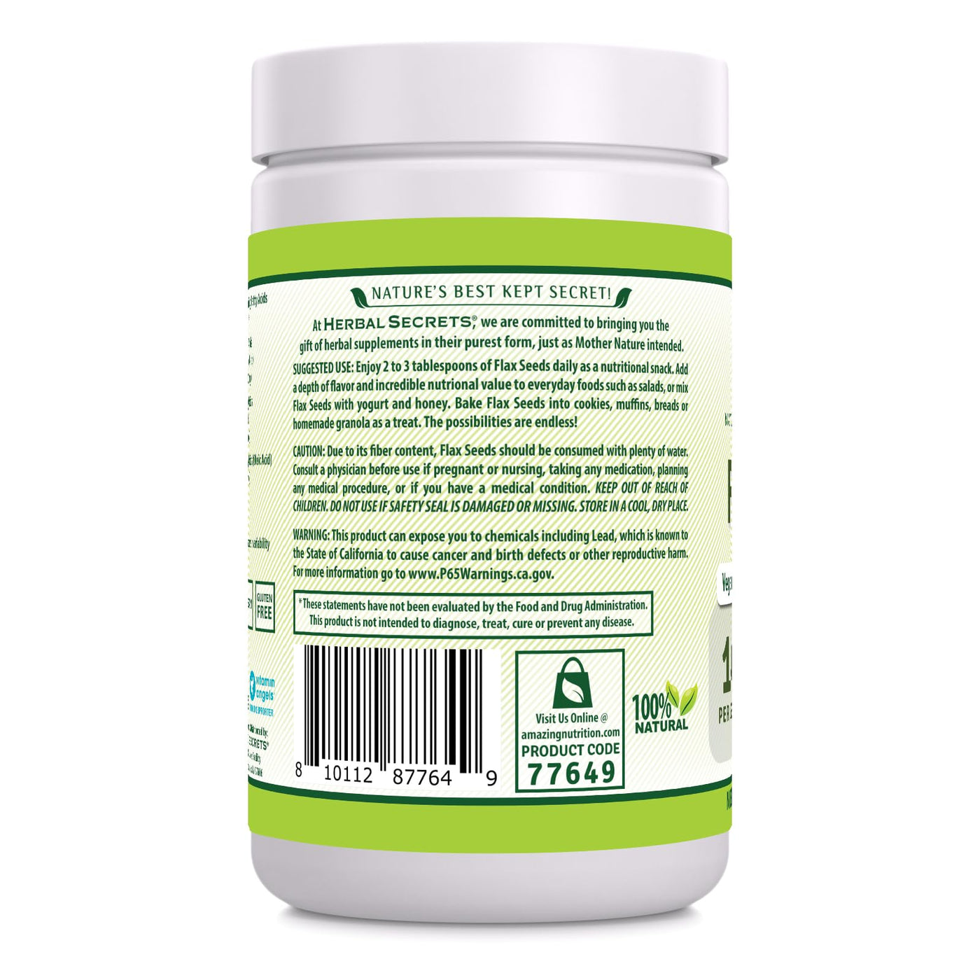 Herbal Secrets Organic Whole Flax Seeds Supplement | 14 G Per Serving | Raw Vegan | Non-GMO | Gluten-Free | Made in USA (1 Pack, 1 Lb) 16 Ounce (Pack of 1)