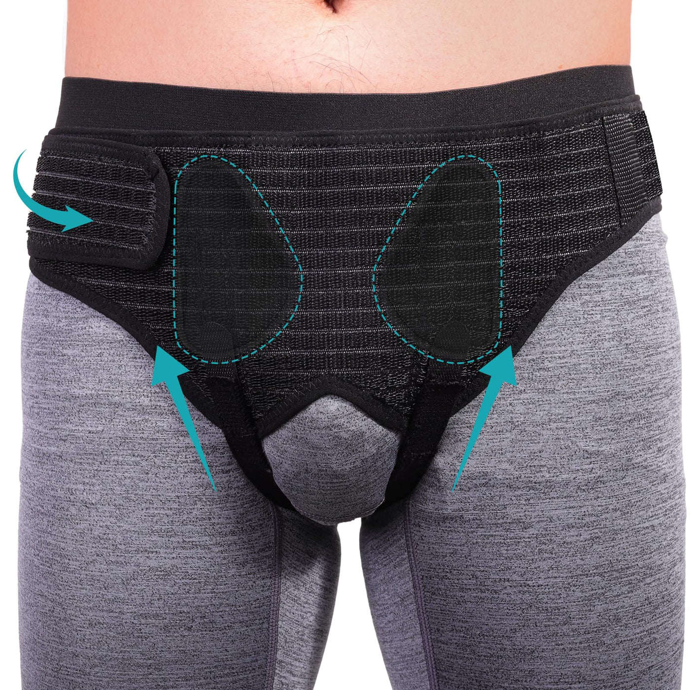 - [4 Hernia Pads] 2 sets of removable compression pads of varying sizes offer a high level of elasticity that simulates muscle tissue, secured using Hook&Loop and can be selected and easily adjusted to any desired position, thereby providing better relief from hernia discomfort.