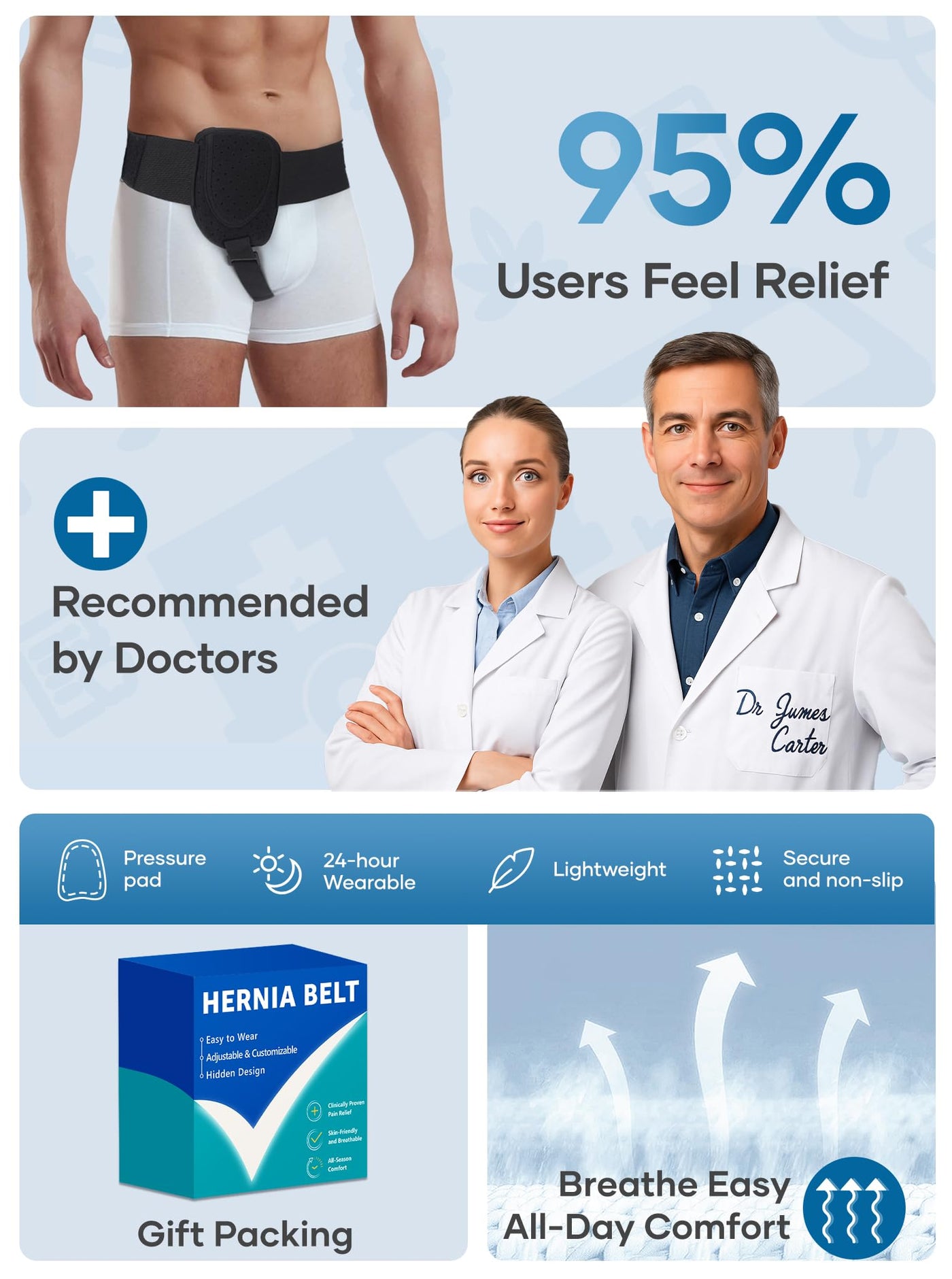 - Comfort & ReliefClinically-Proven Hernia Pain Relief Features medical-grade compression pad to gently push bulges inward while strengthening abdominal walls. Breathable skin-friendly fabric reduces irritation during prolonged wear.