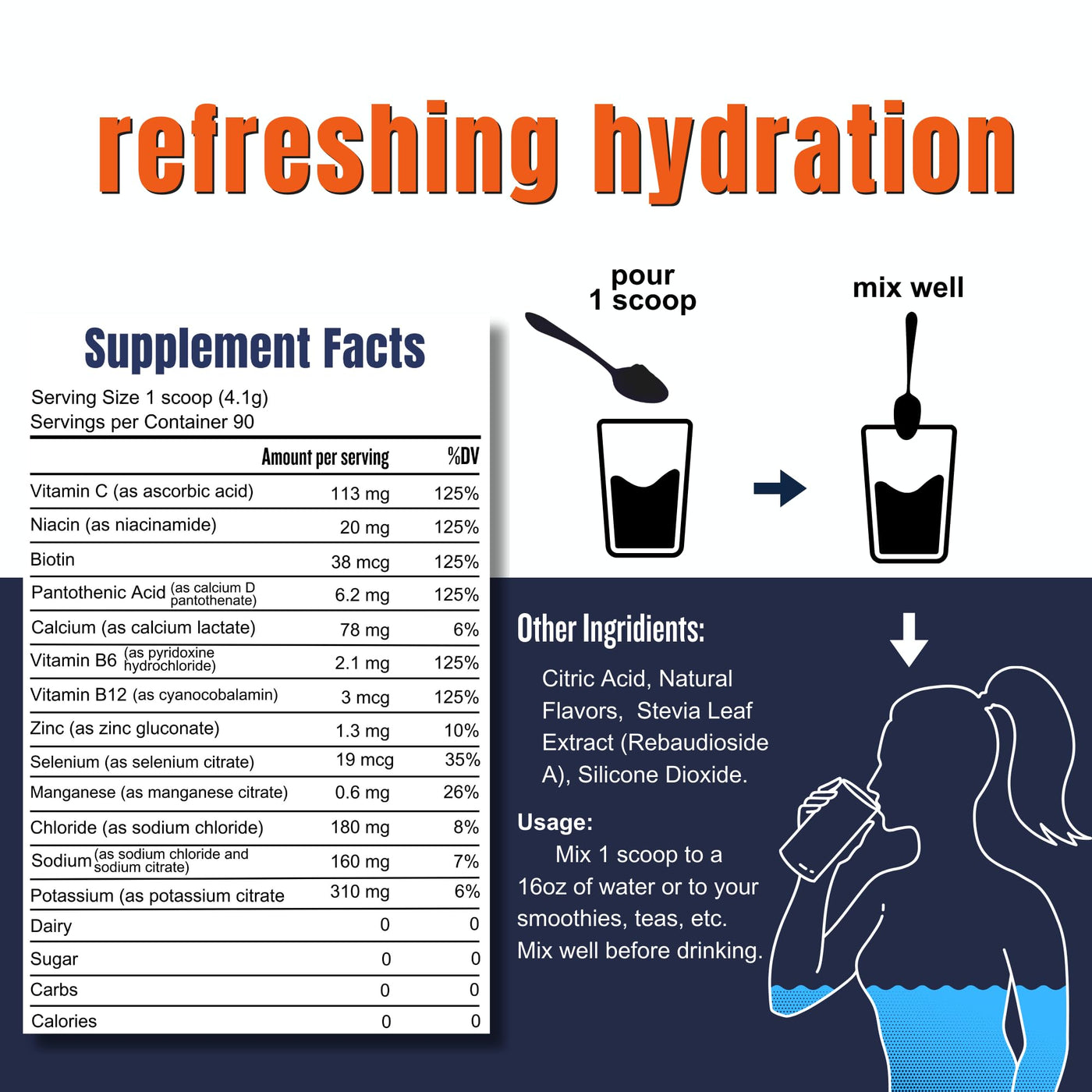 - 90 SERVING ELECTROLYTE POWDER Enjoy the benefits of 90 servings of electrolyte and trace mineral support in one package. Support your health and wellness goals with an easy-to-mix powder that can be mixed in smoothies or a glass of water. Mix one scoop into 16 oz of waterbest served cold. Use as directed.