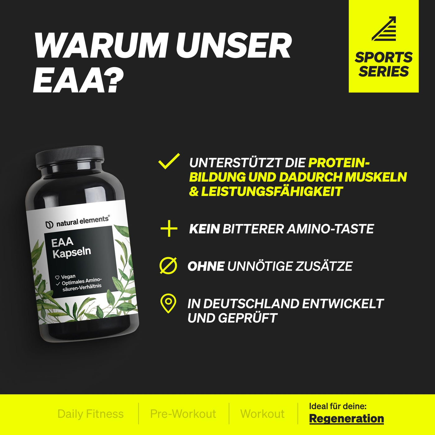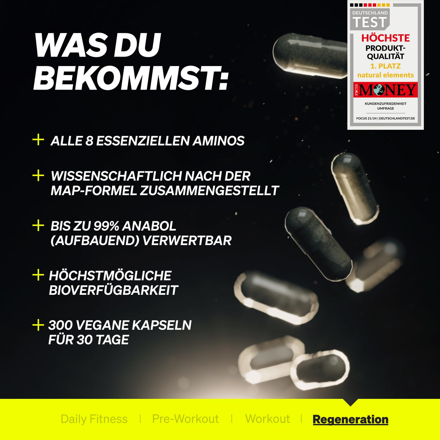 - TRAINING TURBO IN CAPSULE FORM | Our EAA capsules contain the 8 essential amino acids, put together in the optimal ratio according to the MAP formula. This means they can be absorbed extra quickly and used for your protein synthesis.