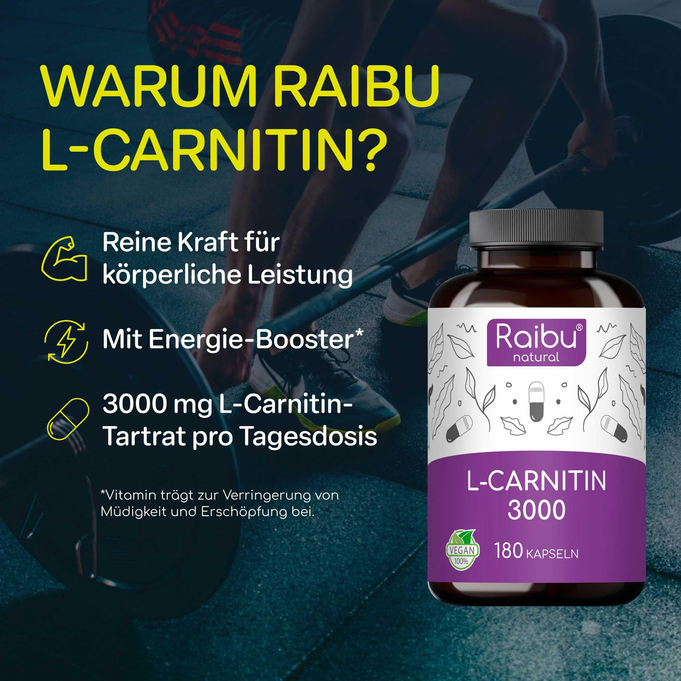 - FOR YOUR ACTIVE LIFESTYLE: L-carnitine, an essential amino acid, supports the transport of fatty acids into the cells and thus promotes energy production. With 3000mg of L-Carnitine Tartrate (2000mg L-Carnitine) daily, our formula offers reliable support for an active lifestyle.
