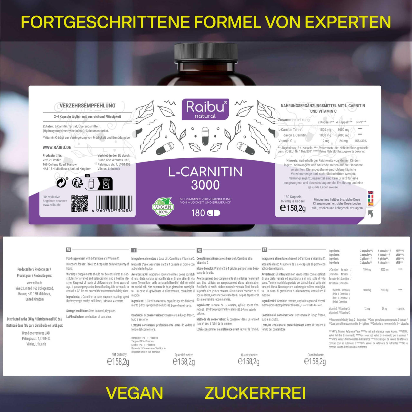 - PURITY AND HIGH-QUALITY INGREDIENTS: Our vegan high-dose L carnitine capsules are free of lactose, gluten and harmful additives. Ideal for a nutritionally conscious lifestyle.