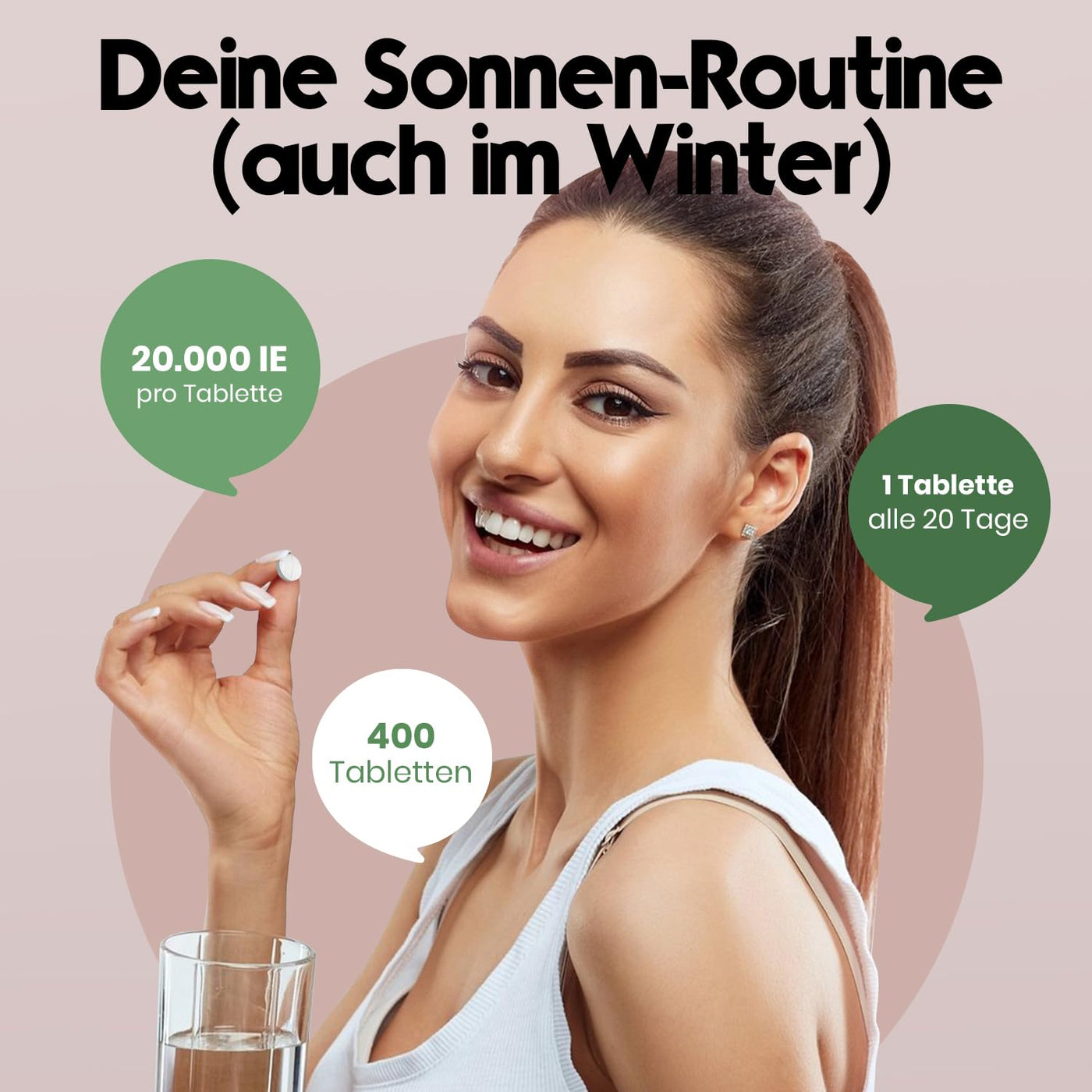 - Simple dosage: According to the EU regulation, we can recommend a daily intake of 1000 IU of vitamin D3. However, every person is unique and has individual needs. With a dosage of 20,000 IU of vitamin D3 per tablet, it is enough to take one tablet every 20 days to cover the recommended daily dose of 1000 IU. We recommend that you always coordinate the optimal dosage for you with your doctor.