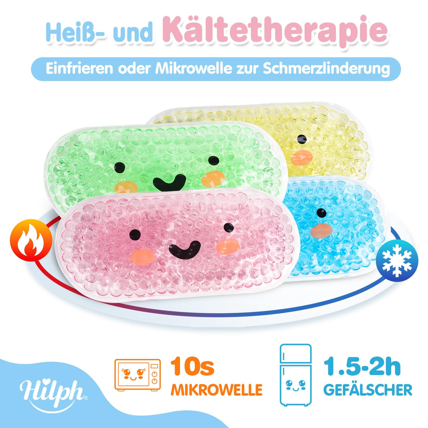 Hilph Mini Gel Cooling Packs Children's Cooling Pads for Children, 4 x Cold Warm Compress Non-Toxic Small Ice Packs Cooling Pads for Fever, Bumps, Bruises, Toothaches or Headaches, 2.5" x 5.3" Rectangular (Smile Pattern)