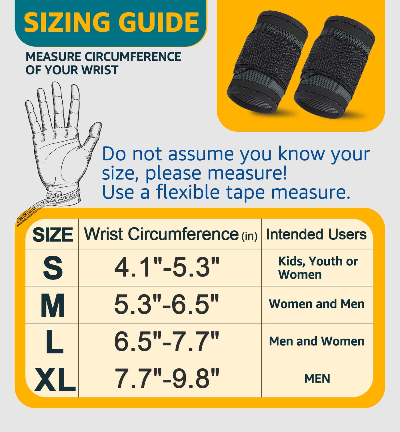 - Size and Fit Guidance: For the best support, measure the full circumference of your wrist with a flexible tape and choose your size based on the chart: S (4.1"5.3"), M (5.3"6.5"), L (6.5"7.7"), XL (7.7"9.8"). If you are between sizes or prefer a snug, higher-compression fit for training, select the smaller size; for relaxed, all-day comfort, choose the larger size. The knit cuff has natural stretch to accommodate minor fluctuations, but correct sizing ensures optimal stabilization and comfort.