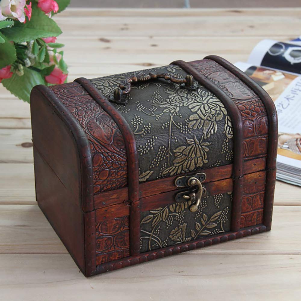 Hofumix Jewelry Boxes Wooden Treasure Box Vintage Treasure Chest Handmade Box Rings Case with Metal Lock for Storing Jewelry Treasure Pearl Cosmetics 3PCS(S,M,L)