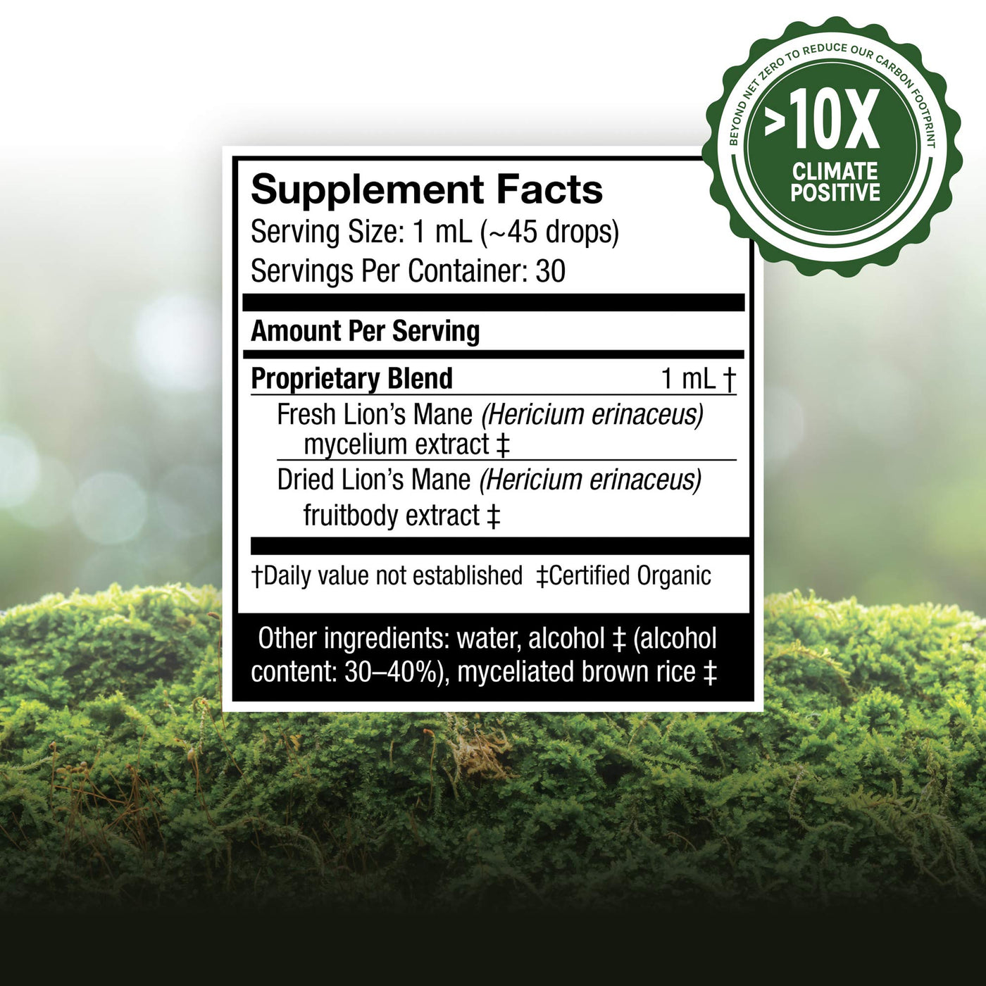 Host Defense, Lion's Mane Extract, Promotes Mental Clarity, Focus and Memory, Daily Mushroom Supplement, Vegan, Organic, 1 fl oz (30 Servings)
