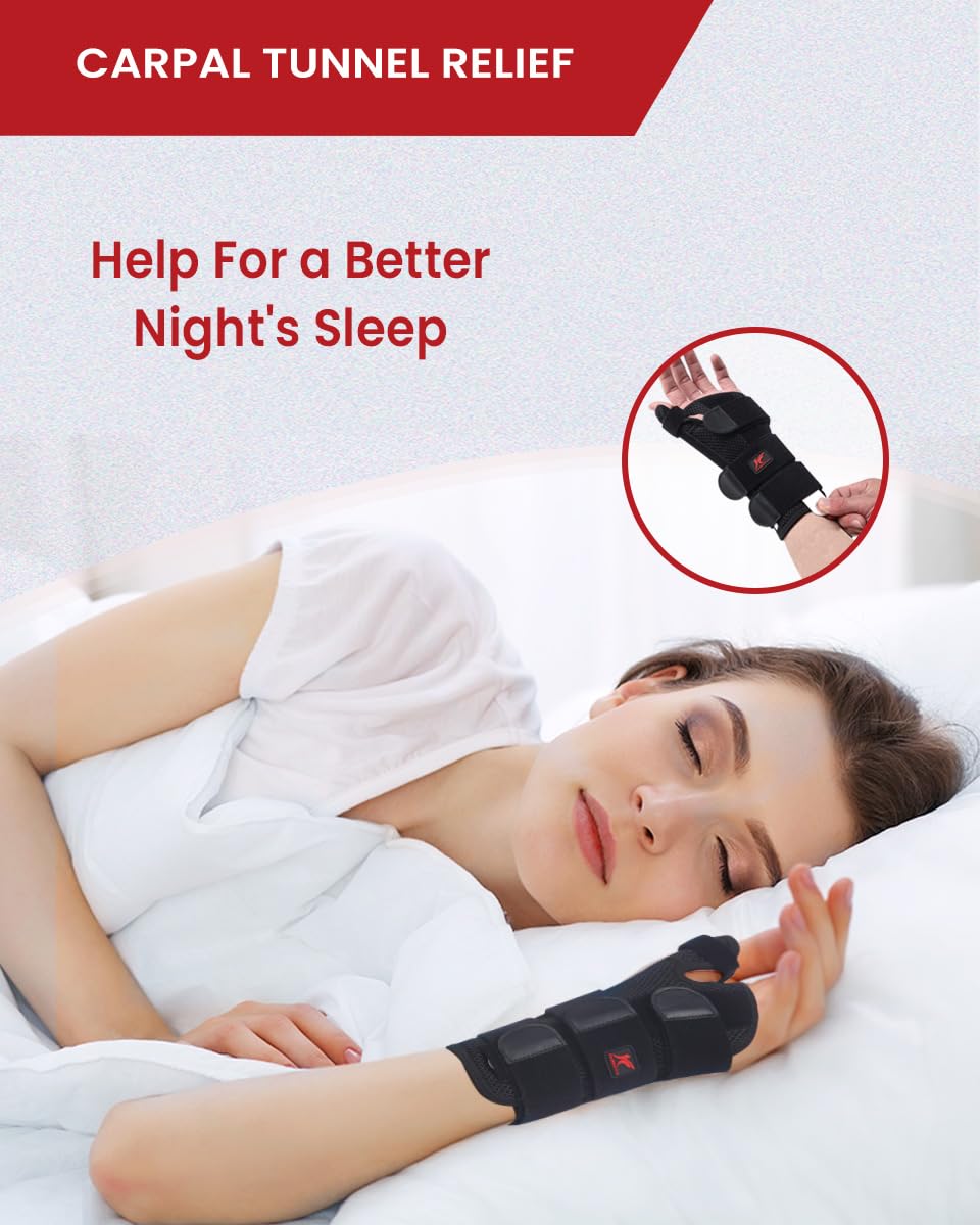 - LIGHTWEIGHT & BREATHABLE FOR NIGHTTIME COMFORT Designed for restful sleep, this wrist brace provides gentle yet effective support to ease carpal tunnel and hand pain overnight. Made from soft, skin-friendly, and breathable materials, it ensures cool, irritation-free wear all night long. Ideal for both men and women, available in 2 sizes for a personalized fit.