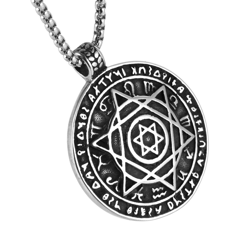 HZMAN Talisman Seal Solomon Six-pointed Star 12 Constellation Pendant stainless steel Necklaces 22+2" Chain Silver