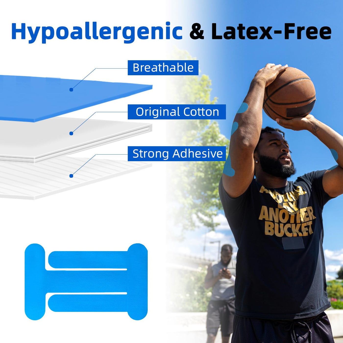 IEADEN Precut Kinesiology Tape for Elbow, 10 Pcs - Elbow Support & Stability, Elbow Pain Relief Athletic Tape - Waterproof & Elastic, Breathable Hypoallergenic Latex-Free Tape, Blue