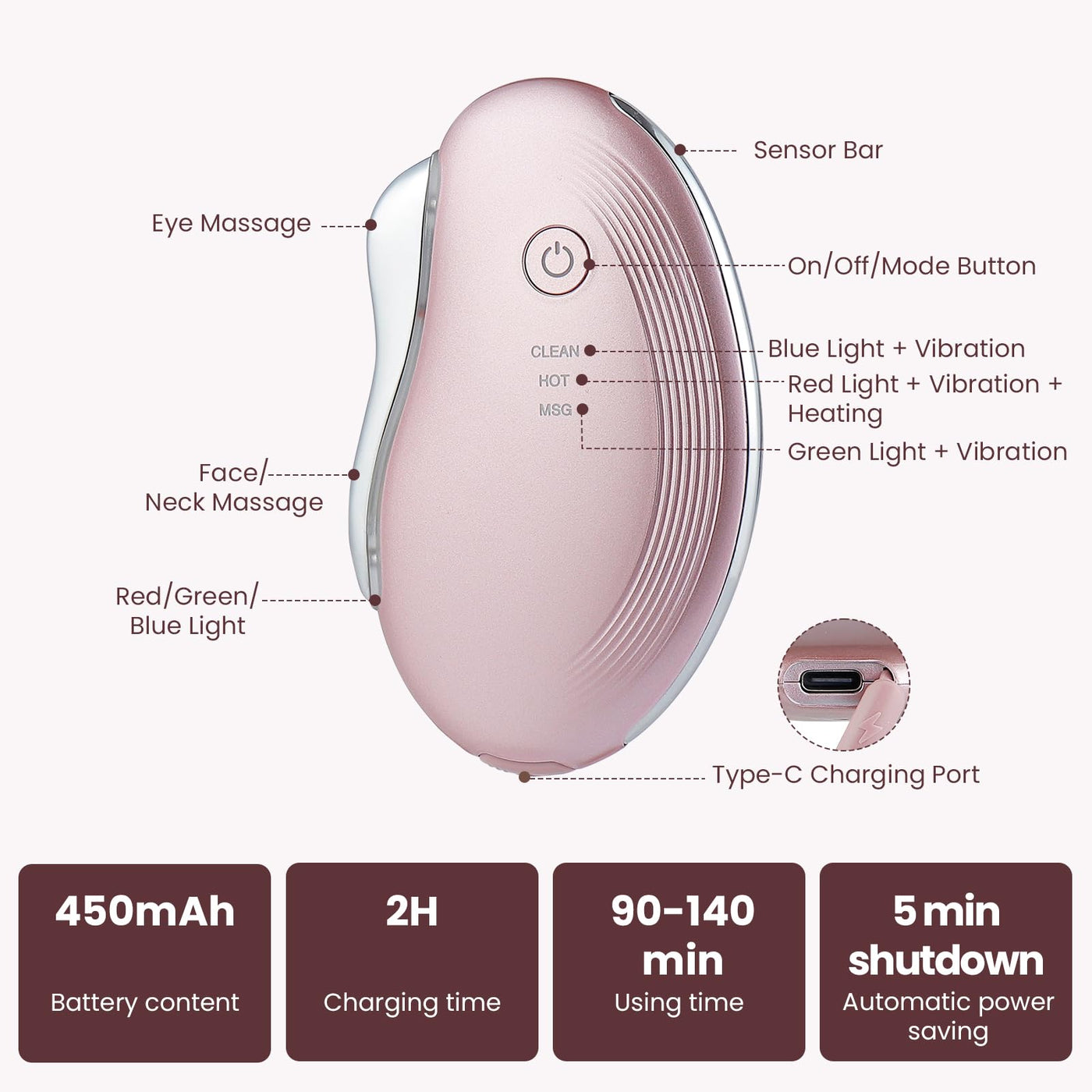 - Heated Gua Sha Massager: This Facial Massager Combines Vibration and Heating, providing a comforting and warming sensation during use. special design scraping board can be a very good fit for the skin, enhancing the overall pleasure and relaxation of your experience.