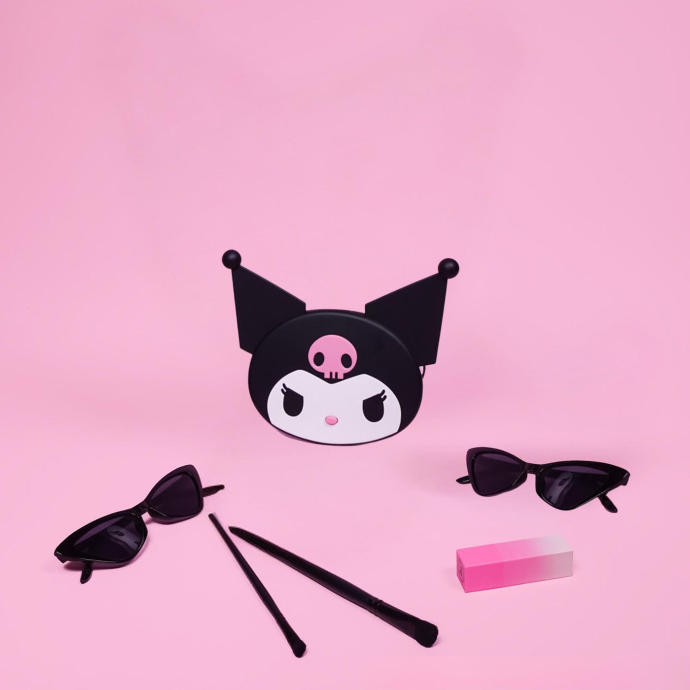 - KUROMI MAKEUP MIRROR: The magnifying travel mirror with light features a Kuromi's signature shape with a pink skull design on the top which adds a touch of mischief to your makeup routine