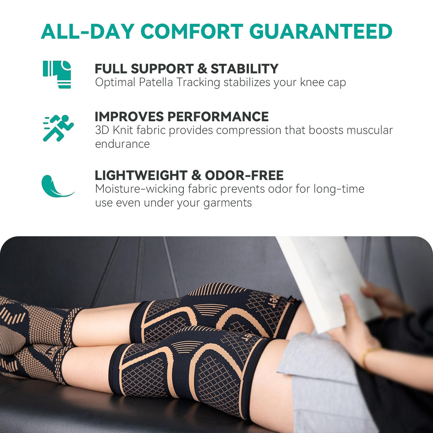 - Professional: INDEEMAX copper knee brace for men and women is ideal for work that require regular use of the knee, such as standing work, morning walks, hiking, running, ball games, cycling and gym workouts (including the elderly). The knee brace for knee pain is ideal for arthritis, swelling, meniscus and post-operative knee recovery.