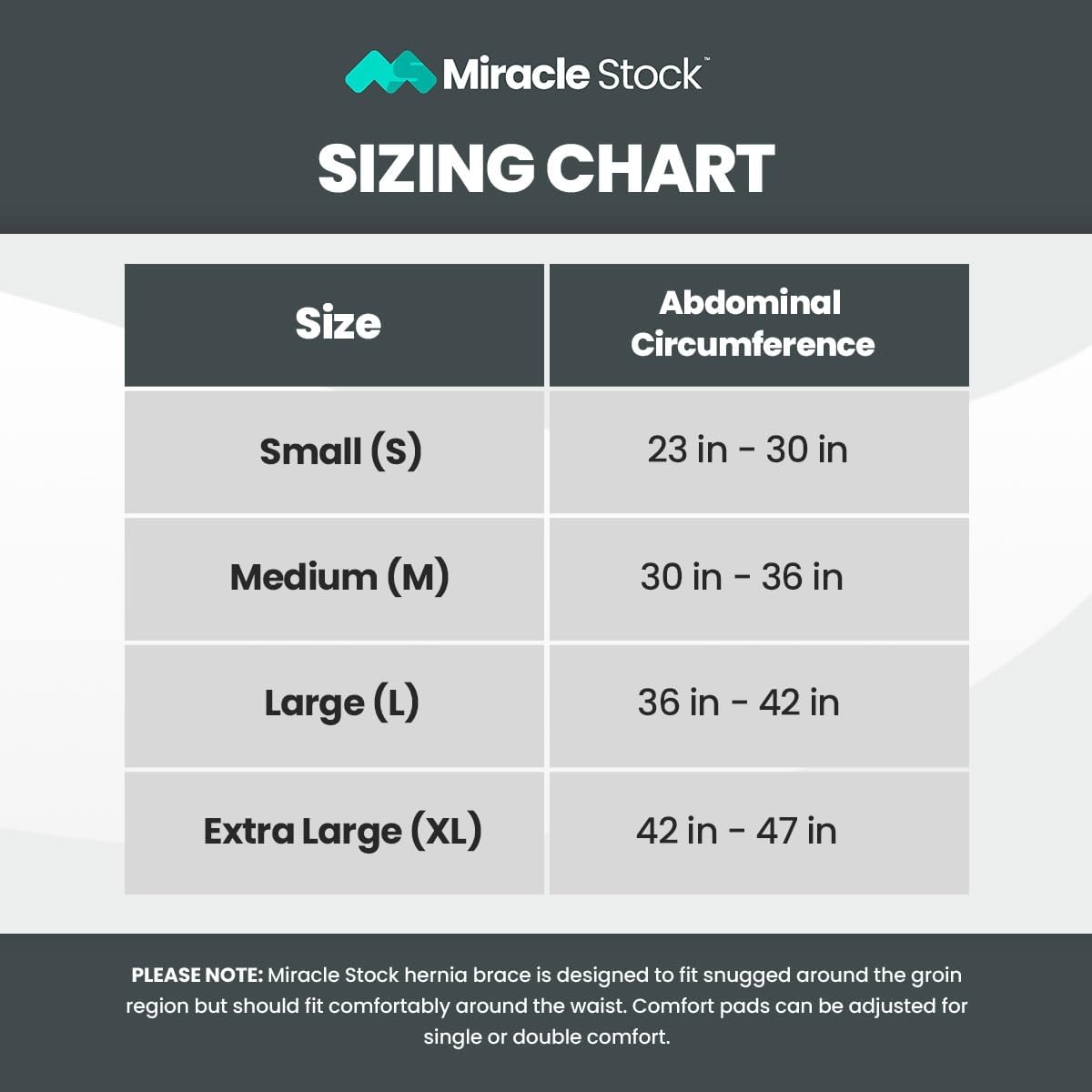- Unisex sizing S-XL: Fits most adults, consult the size chart and measure at the hips for best fit, not intended for children or for umbilical or hiatal conditions.