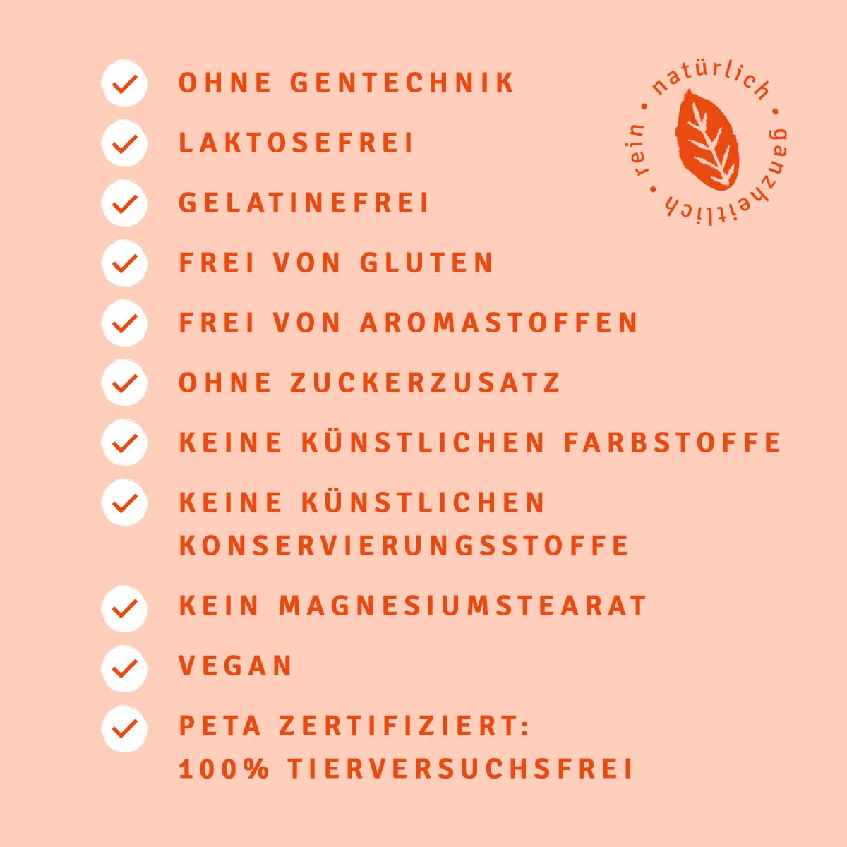 - NATURAL, HOLISTIC, PURE | free from unnecessary additives and ingredients. Free from gluten, lactose-free, no added sugar, no artificial colors, no added flavors, no preservatives, no magnesium stearate and no genetic engineering.